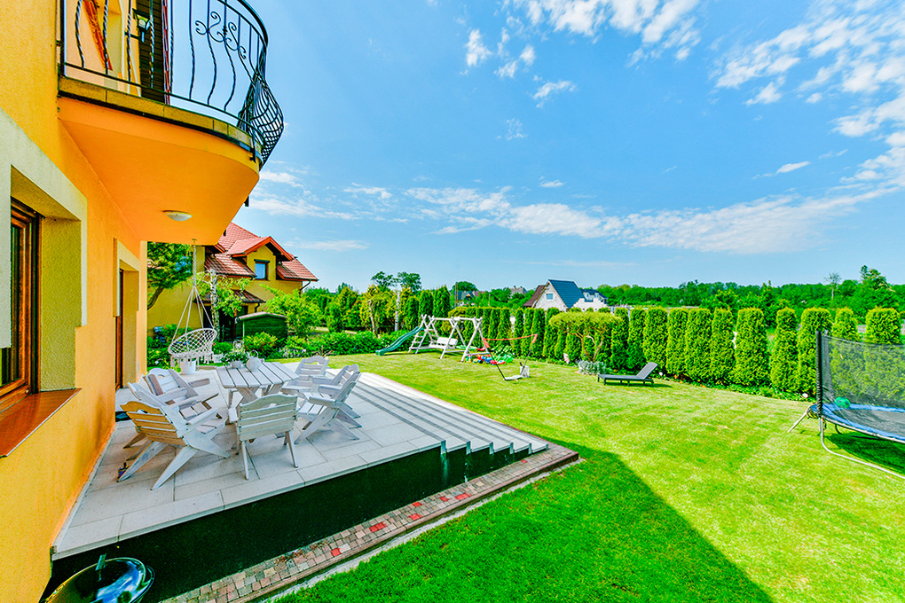 Ort: Sarbinowo. Ruhige Lage in einer Wohnsiedlung. Ostseestrand mit Strandpromenade 850 m. Ortsmitte 1000 m.