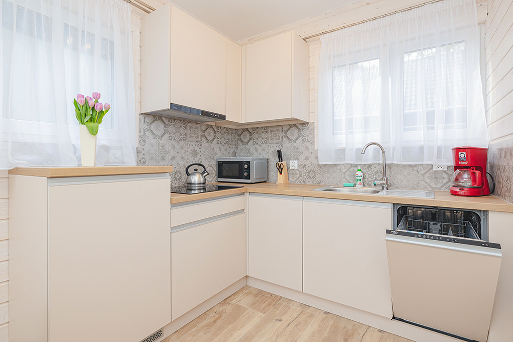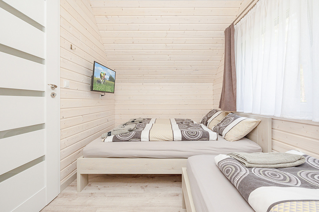 PL 30.9 Ferienhaus 2-6 Pers.: 3-Zimmer-Ferienhaus mit 65 qm Wohnfläche über 2 Etagen. Parterre: Wohn-/Essraum mit Couchgarnitur (Ausziehcouch 2 Pers.), Flachbild Sat-TV (deutsche Programme), großem Esstisch, Küchenzeile (Induktionsherd 4 Platten, Abzugshaube, Mikrowelle, Spülmaschine). Modernes Bad mit Du, Wb, Bidet, WC. 1. Etage: 3-Bettzimmer mit Doppelbett, Einzelbett, TV. 3-Bettzimmer mit Doppelbett, Einzelbett. Kleines Bad mit Wb, WC. Hinweis: Die max. Belegung darf 6 Pers. nicht überschreiten.