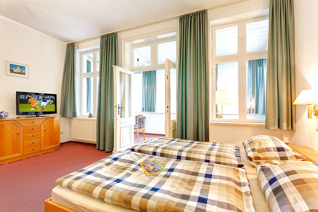 Haus: Schöne restaurierte Villa im Stil der Bäderarchitektur. Komfortable Ferienwohnungen mit geschmackvoller Einrichtung. Alle Wohnungen mit Sat-TV, kostenlosem Internet über WLan, alle Küchen mit Backofen. Zentralheizung. Im Haus: Münz-Waschmaschine/ Trockner. Gemeinschaftlicher Garten (500 qm) mit Liegewiese, Sitzecken, Sandkasten. Kinderfreundliches Haus: Verleih von Kinderstühlen, Babybetten. 1 PKW-Stellplatz pro Fewo.