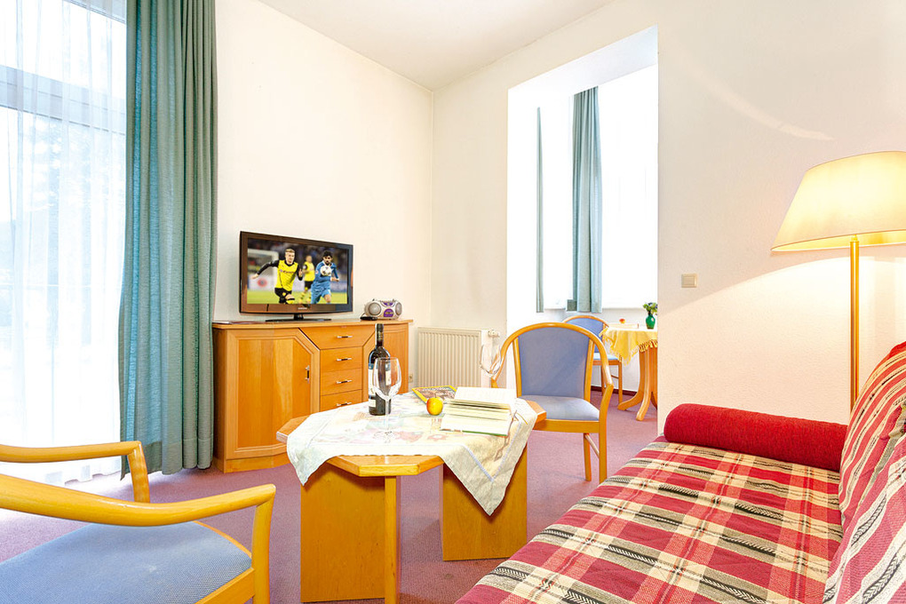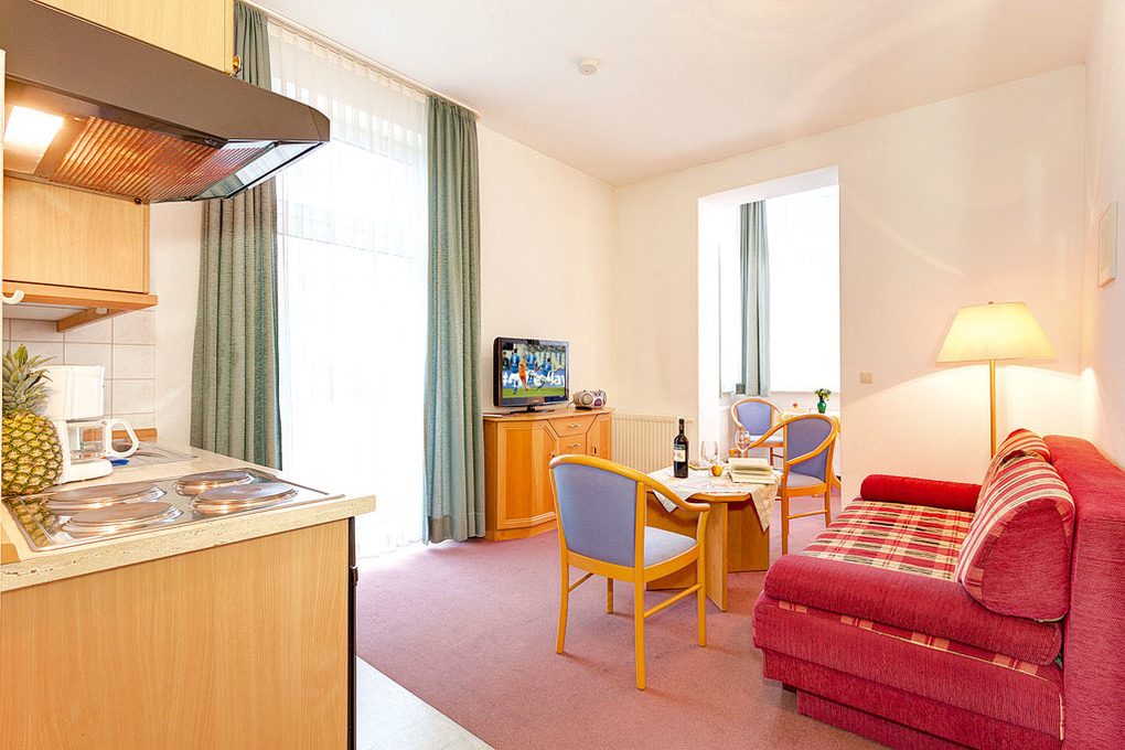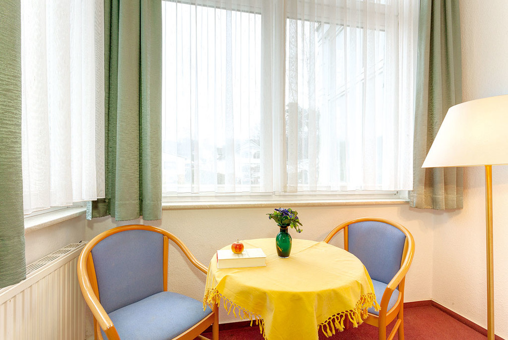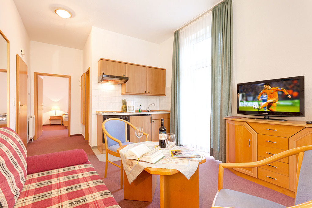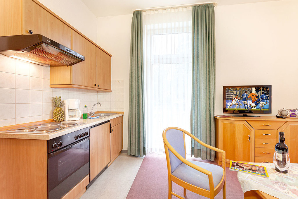 D 91.22 Wohnung 2-4 Pers.: 2-Zimmerwohnung, 36 qm Wohnfläche, 1. Etage. Wohn-/Essraum mit Sofa (Schlafcouch 2 Pers.), Esstisch, Küchenzeile. Kleiner Wintergarten mit Sitzecke. Doppelzimmer. Bad/WC.