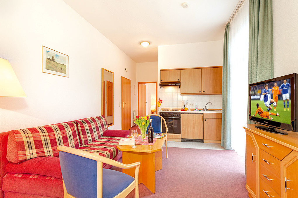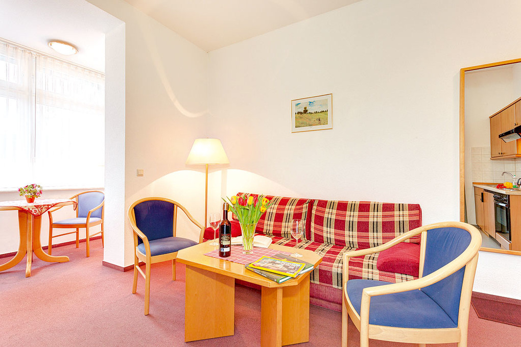 D 91.22A Wohnung 2-4 Pers.: 2-Zimmerwohnung, 36 qm Wohnfläche, 2. Etage. Wohn-/Essraum mit Sofa (Schlafcouch 2 Pers.), Esstisch, Küchenzeile. Kleiner Wintergarten mit Sitzecke. Doppelzimmer. Bad/WC.