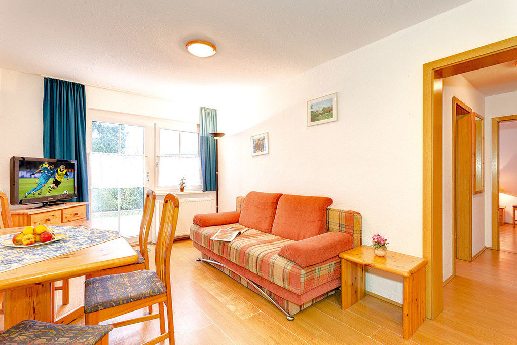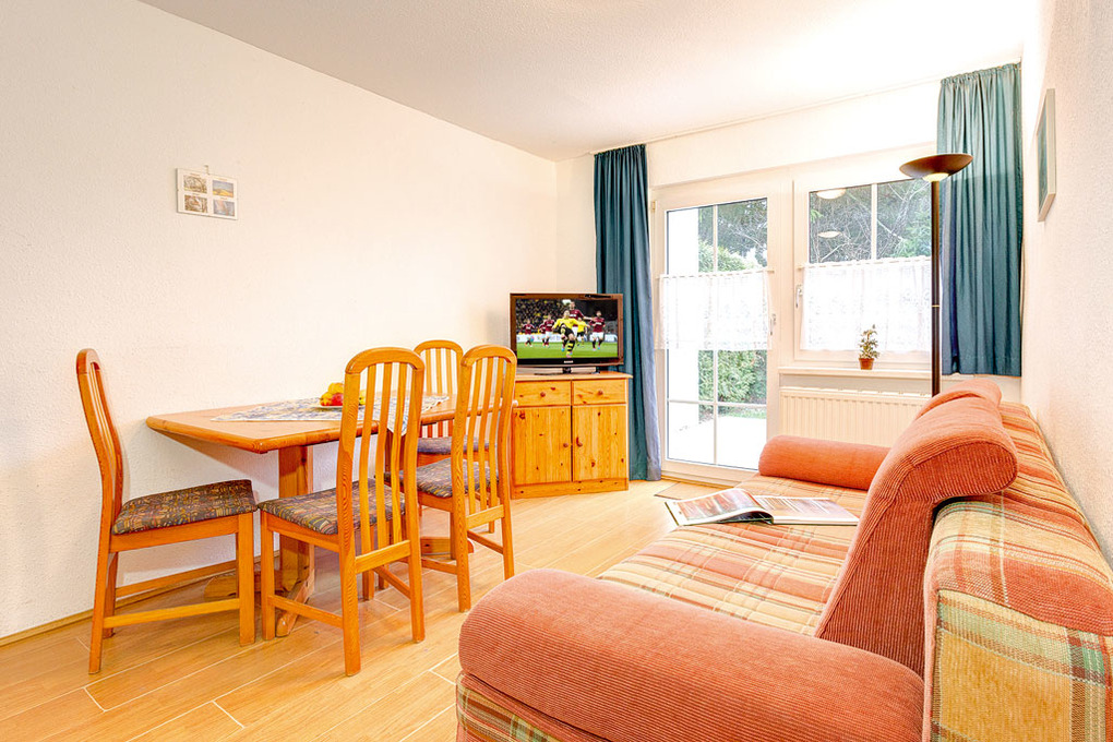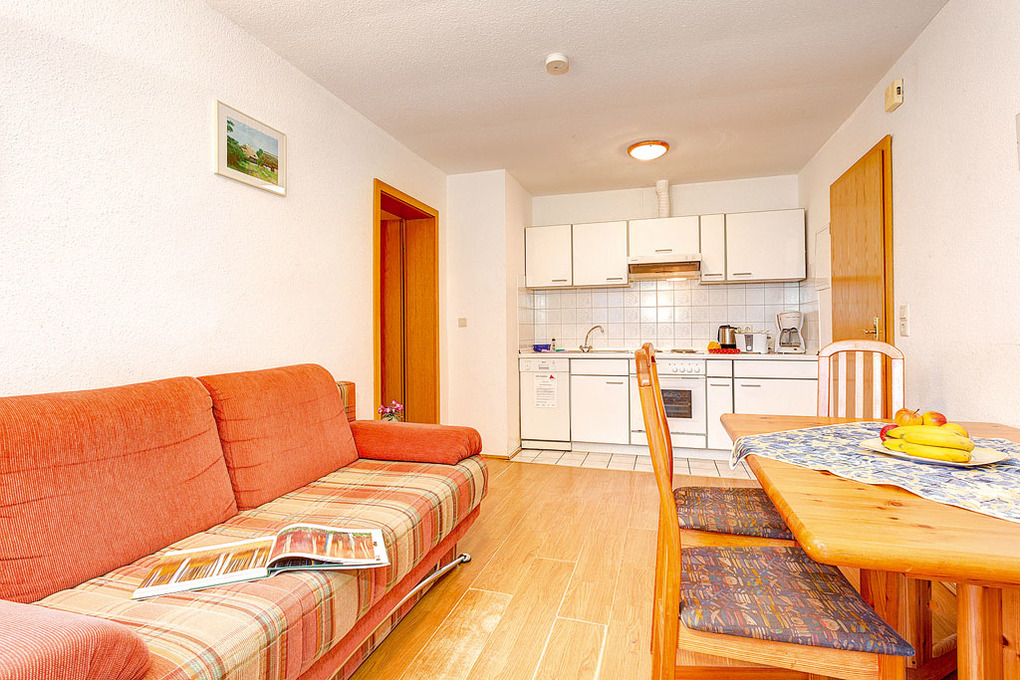 D 91.24A Wohnung 2-6 Pers.: 3-Zimmerwohnung, 50 qm Wohnfläche, Parterre. Wohn-/Essraum mit Couchgarnitur (Schlafcouch 2 Pers.), Esstisch, Küchenzeile. Doppelzimmer. 2-Bettzimmer. Bad/WC. Schöne Terrasse mit Sitzmöbeln.