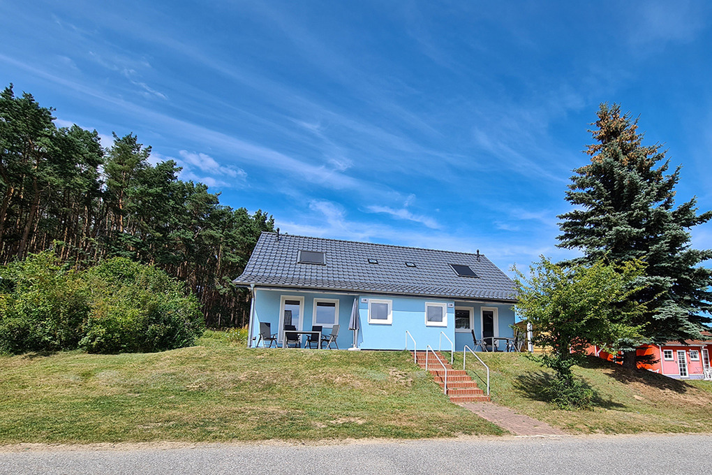 Haus: Modernes Ferienhaus mit 2 Haushälften auf einem Gartengrundstück am Waldrand. Helle, geschmackvolle Einrichtung. Kostenloser Internet-Zugang über W-Lan (in Abhängigkeit der Netzverfügbarkeit). Zentralheizung. Terrasse mit Sitzmöbeln. 1 Pkw-Stellplatz/Haus.