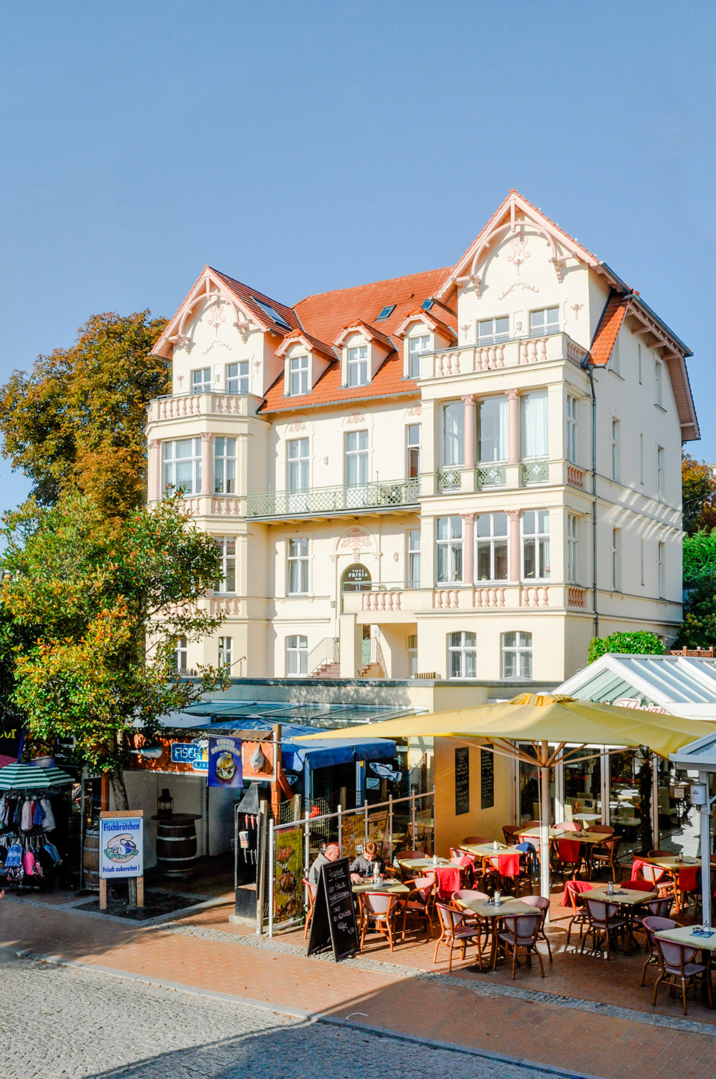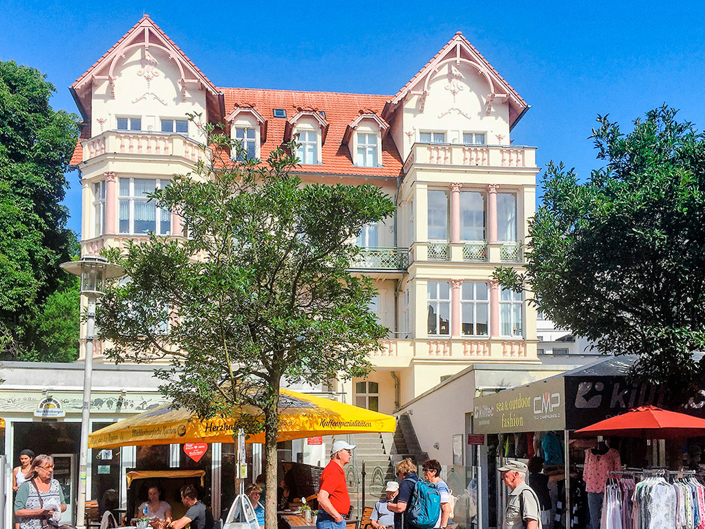 Haus: Sehr schöne Villa mit komfortablen Wohnungen, im Stile der Bäderarchitektur aufwendig saniert. Moderne, geschmackvolle Einrichtung. Kostenloser Internetzugang über W-Lan. Zentralheizung. Nichtraucherwohnung. 1 Fahrradabstellraum in der Tiefgarage.