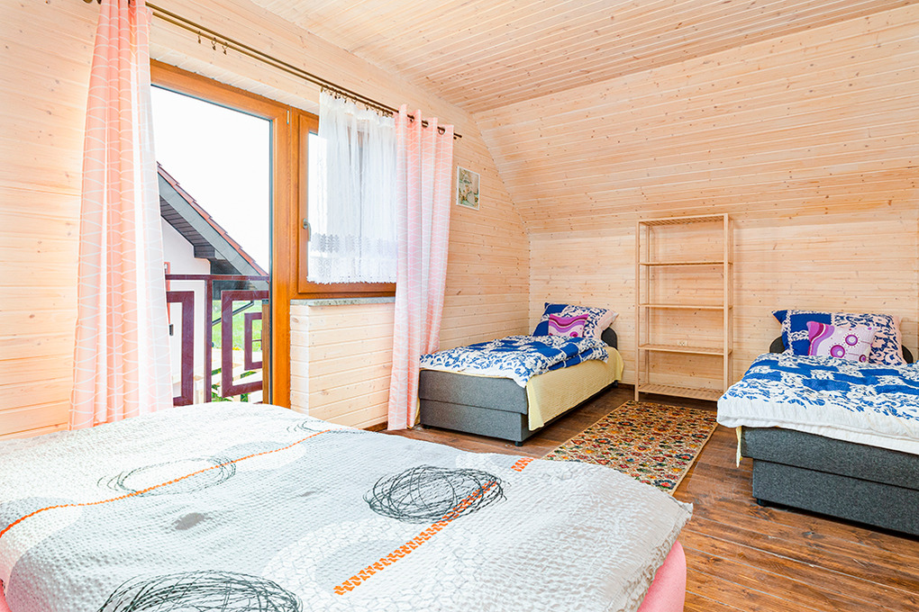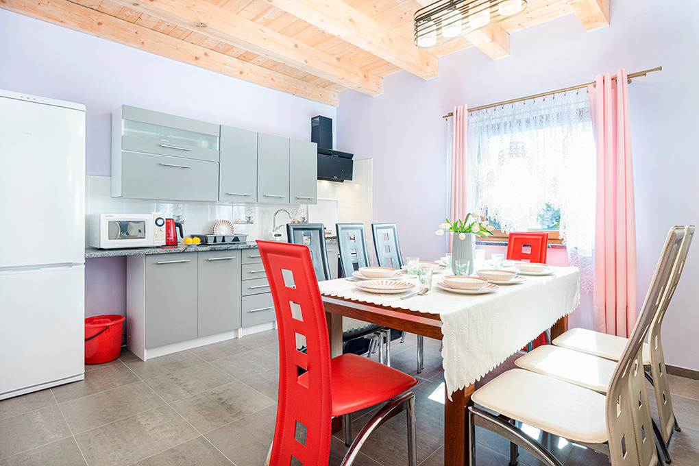 Drei große, schöne, komfortable Ferienhäuser mit moderner Einrichtung. Kostenloses Internet über W-Lan. Zentralheizung, teils Fußbodenheizung. 2 Balkone. Terrasse mit Sitzmöbeln, Grill. 2 Parkplätze/Haus auf dem umzäunten Grundstück.