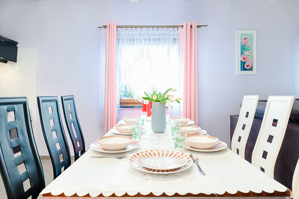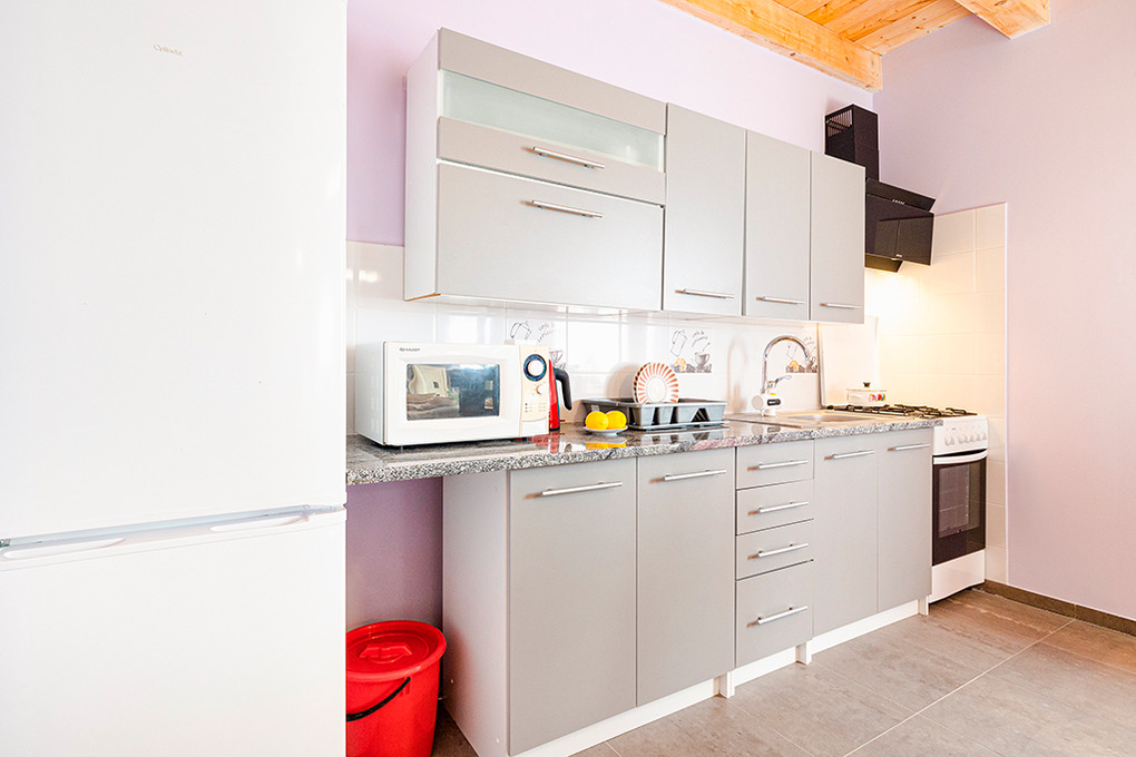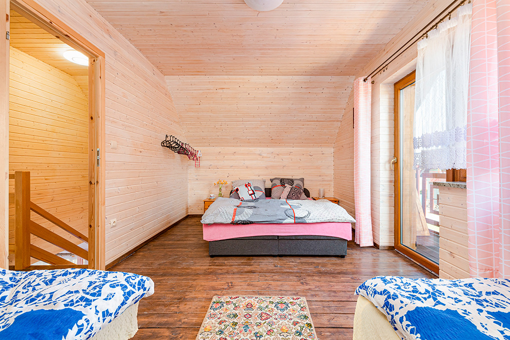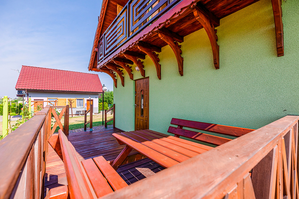 Drei große, schöne, komfortable Ferienhäuser mit moderner Einrichtung. Kostenloses Internet über W-Lan. Zentralheizung, teils Fußbodenheizung. 2 Balkone. Terrasse mit Sitzmöbeln, Grill. 2 Parkplätze/Haus auf dem umzäunten Grundstück.