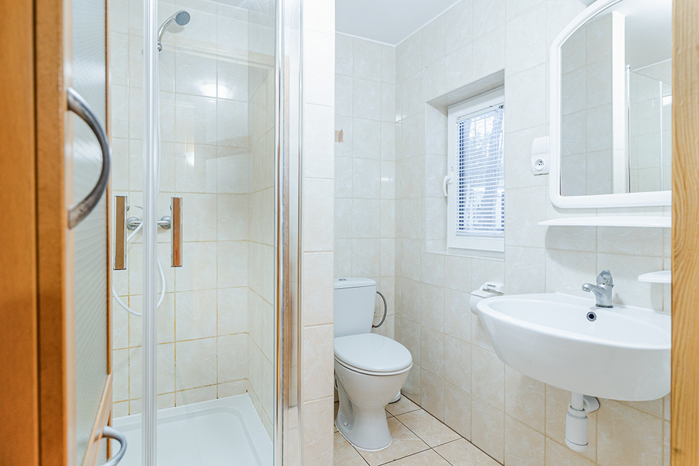 PL 30.41 Ferienhaus 1-5 Pers.: 3-Zimmer-Haushälfte mit 50 qm Wohnfläche über 2 Etagen. Parterre: Wohn-/Essraum mit Ausziehsofa (1 Pers.), Flachbild Sat-TV (deutsche Programme), Esstisch, Küchenzeile (2 E-Platten, Mikrowelle). Bad/WC. 1. Etage: 3-Bettzimmer mit Doppelbett, Einzelbett. 3 -Bettzimmer. Terrasse mit Sitzmöbeln.