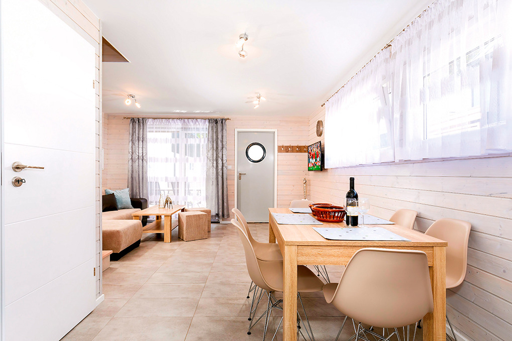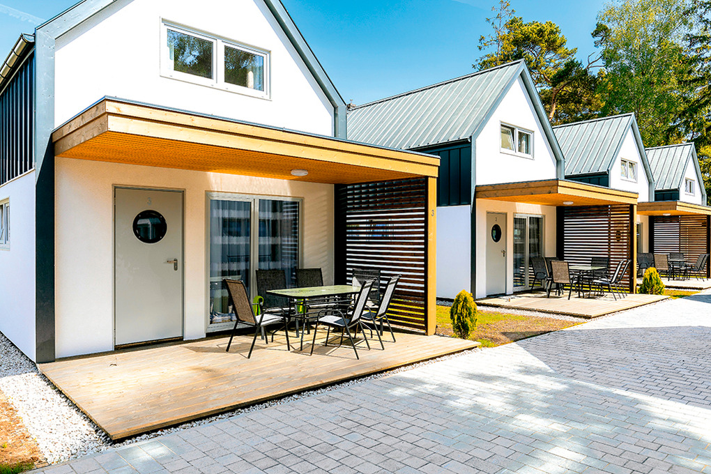 Haus: Schöne Ferienhausanlage. Nichtraucherhäuser. Moderne, geschmackvolle Einrichtung. Alle Häuser mit Klimaanlage (Heizfunktion). Kostenloses Internet über W-Lan. Überdachte Terrasse mit Sitzmöbeln. Grillplatz, kleiner Spielplatz (Schaukel, Rutsche, Sandkasten). 2 Pkw-Stellplätze/Haus auf dem abgeschlossenen Grundstück.