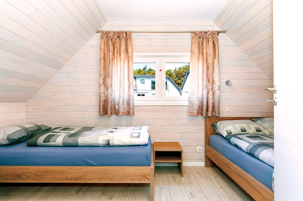 PL 30.21 Ferienhaus 3-6 Pers.: 3-Zimmer-Ferienhaus mit 65 qm Wohnfläche über 2 Etagen. Parterre: Wohn-/Essraum mit Couchgarnitur (Ausziehsofa 2 Pers.), Flachbild Sat-TV (deutsche Programme), großem Esstisch, Küchenzeile (4 E-Platten, Abzugshaube, Mikrowelle, Spülmaschine). Bad/WC. 1. Etage: Zwei 3-Bettzimmer mit Doppelbett, Einzelbett. Hinweis: Die max. Belegung darf 6 Pers. nicht überschreiten.