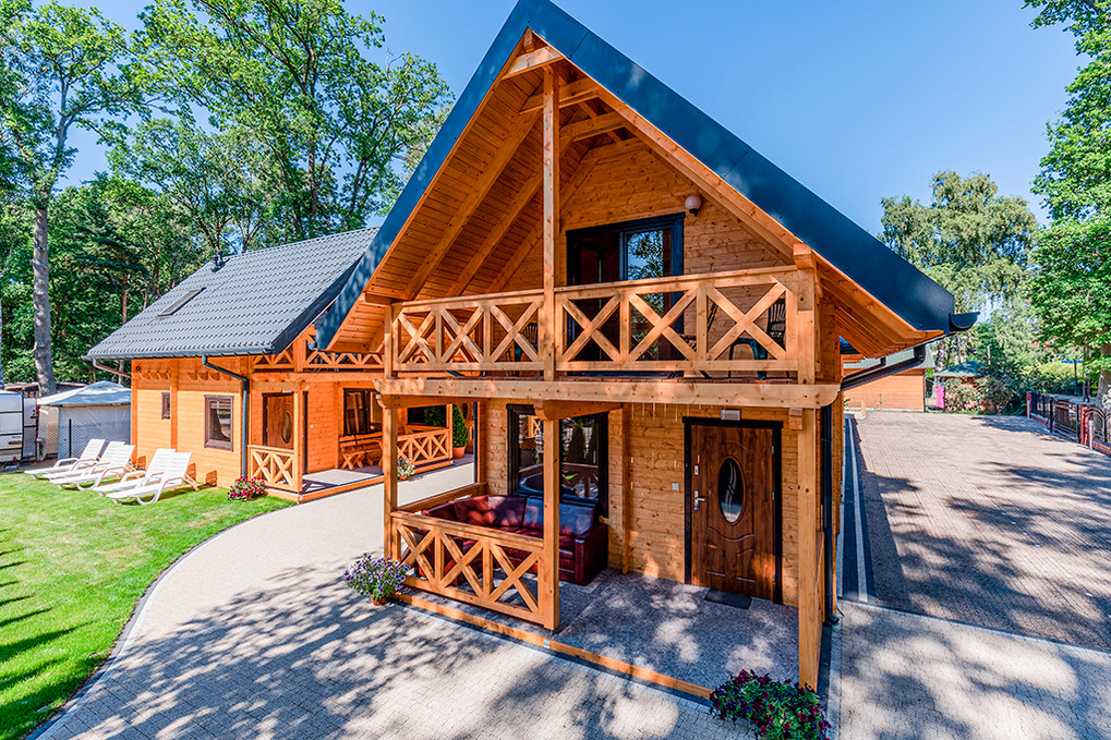 Haus: Schöne Ferienhausanlage mit 7 neuen Holzchalets, 2018 neu erbaut. Freundliche, geschmackvolle Einrichtung. Kostenloses Internet über Wi-Fi. Heizung mit E-Radiatoren. Warmwasser über E-Boiler (80 l). Terrasse mit Sitzmöbeln. Grillplatz, kleiner Spielplatz (Rutsche, Klettergerüst, Sandkasten) zur gemeinschaftlichen Nutzung. 1 Pkw-Stellplatz/Haus auf dem umzäunten Grundstück.