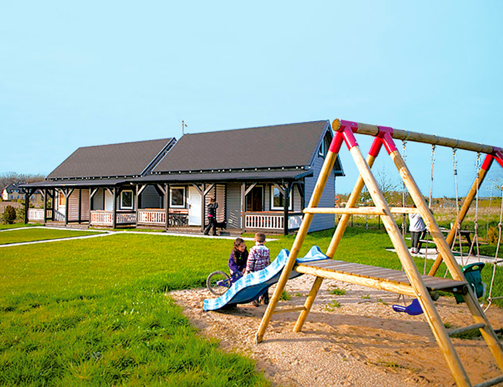 Haus: Kleine Ferienhausanlage mit 2 Doppelhäusern im Schwedenstil. Freundliche, wohnliche Einrichtung. E-Radiatoren (auf Wunsch), Warmwasser über E-Boiler (50 l). Kostenloses Internet über W-Lan. Überdachte Terrasse mit Sitzmöbeln, Grill. Kleiner Kinderspielplatz mit Schaukel, Rutsche, Sandkasten. Parkplatz auf umzäuntem Grundstück.
