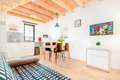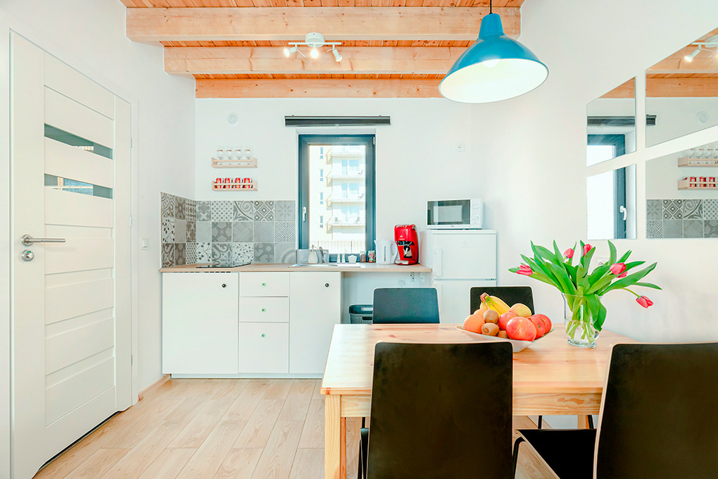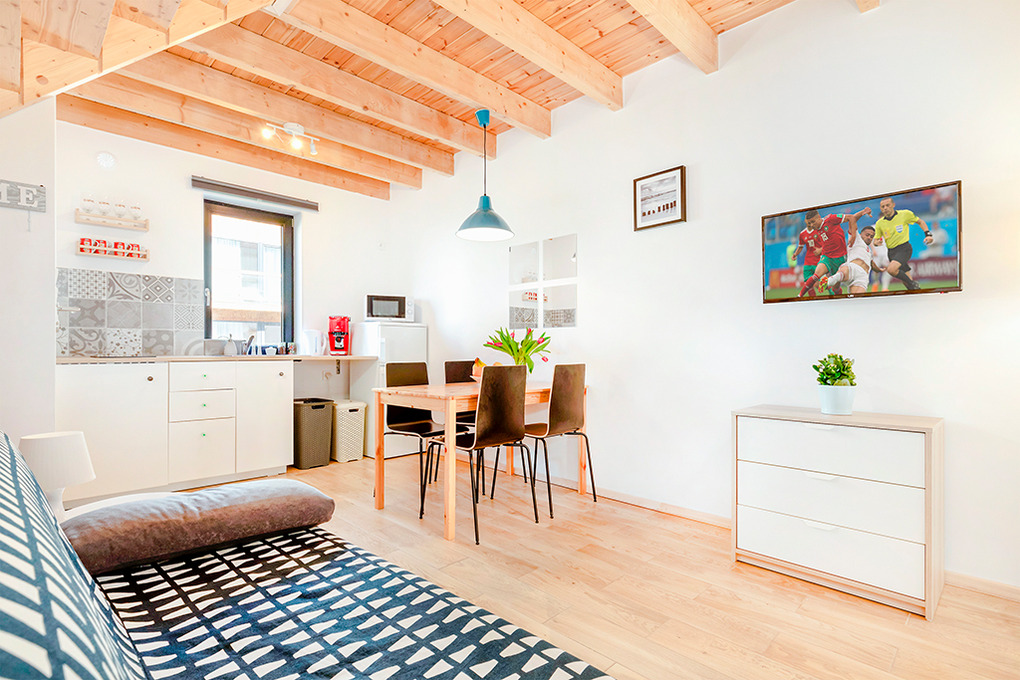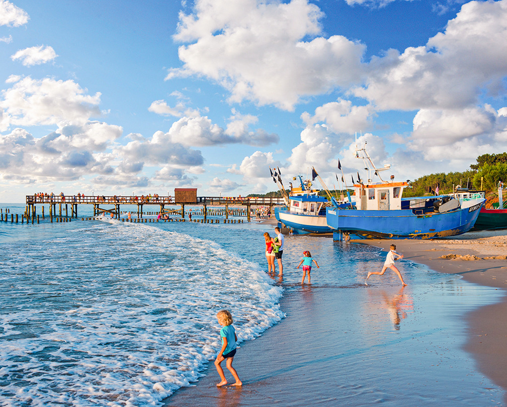 PL 61.6 Ferienhaus 1-4 Pers.: Gepflegtes 3-Zimmer-Reihenhaus mit 45 qm Wohnfläche über 2 Etagen. Parterre: Wohn-/Essraum mit schöner Holzbalkendecke, Couchgarnitur, Flachbild Sat-TV, Esstisch, Küchenzeile (2 Induktionsplatten, Mikrowelle, Tiefkühlfach 30 l). Modernes Bad: ebenerdige Dusche, Wb, WC. 1. Etage: Doppelzimmer mit Balkon. 2-Bettzimmer. Terrasse mit Sitzmöbeln.