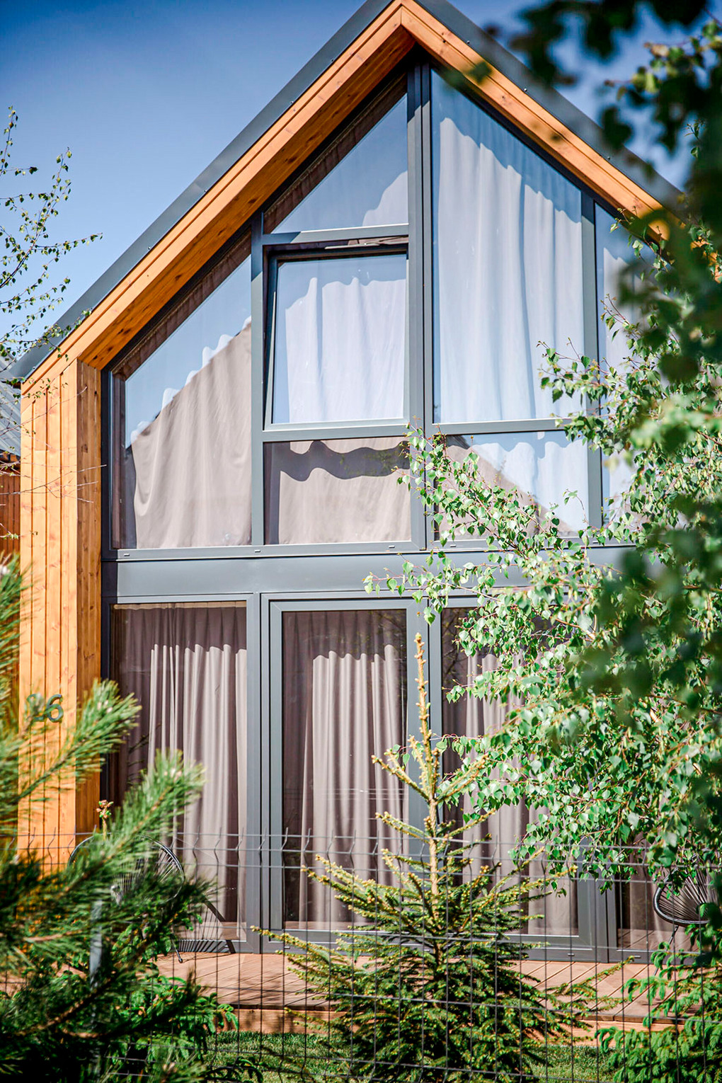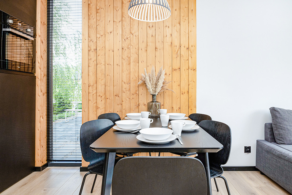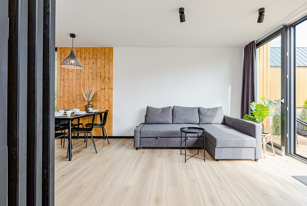 Haus: Schöne, stilvolle Ferienhausanlage, 2021 neu erbaut. Nichtraucherhäuser. Moderne, geschmackvolle Einrichtung. Alle Häuser mit Klimaanlage (Kühl- und Heizfunktion). Kostenloses Internet über W-Lan. Großzügige Terrasse mit Sitzmöbeln. Sauna und Grill zur Gemeinschaftsnutzung im Garten. Schöner Spielplatz für Kinder. 1 Pkw-Stellplatz/Haus vor dem Grundstück. Eine Waschmaschine in der Anlage zur gemeinschaftlichen Nutzung.