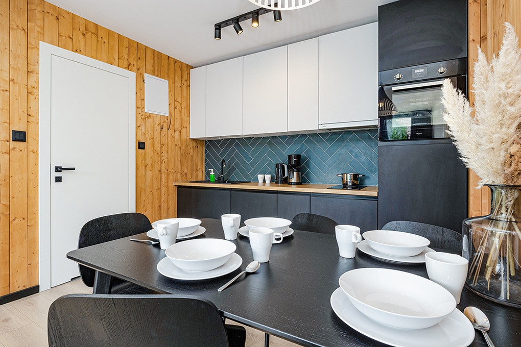 PL 34.16 Ferienhaus 2-6 Pers.: 3-Zimmer-Ferienhaus mit 60 qm Wohnfläche über 2 Etagen. Parterre: Wohn-/Essraum mit Couchgarnitur (Ausziehcouch 2 Pers.), Flachbild Sat-TV (deutsche Programme), großem Esstisch, Küchenzeile (Induktionsherd 2 Platten, Mikrowelle, Spülmaschine). Modernes Bad mit Du, Wb, WC. 1. Etage: Schlafzimmer mit Doppelbett, Klimaanlage. 2-Bettzimmer. Kleines Bad mit Wb, WC.