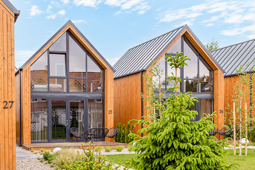 Haus: Schöne, stilvolle Ferienhausanlage, 2021 neu erbaut. Nichtraucherhäuser. Moderne, geschmackvolle Einrichtung. Alle Häuser mit Klimaanlage (Kühl- und Heizfunktion). Kostenloses Internet über W-Lan. Großzügige Terrasse mit Sitzmöbeln. Sauna und Grill zur Gemeinschaftsnutzung im Garten. Schöner Spielplatz für Kinder. 1 Pkw-Stellplatz/Haus vor dem Grundstück. Eine Waschmaschine in der Anlage zur gemeinschaftlichen Nutzung.