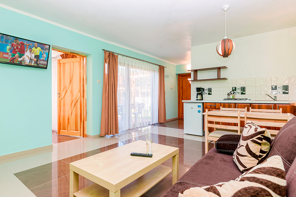 PL 55.3 Ferienhaus 2-4 Pers.: Schönes 2-Zimmer-Reihenhaus mit ca. 50 qm Wohnfläche. Wohn-/Essraum mit Kamin, Sitzgarnitur (Schlafsofa 2 Pers.), Sat-TV (deutsche Programme), Esstisch, Küchenzeile. 4-Bettzimmer mit zwei Doppelbetten. Bad/WC. Die max. Belegung des Ferienhauses darf 4 Pers. nicht überschreiten.