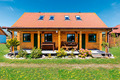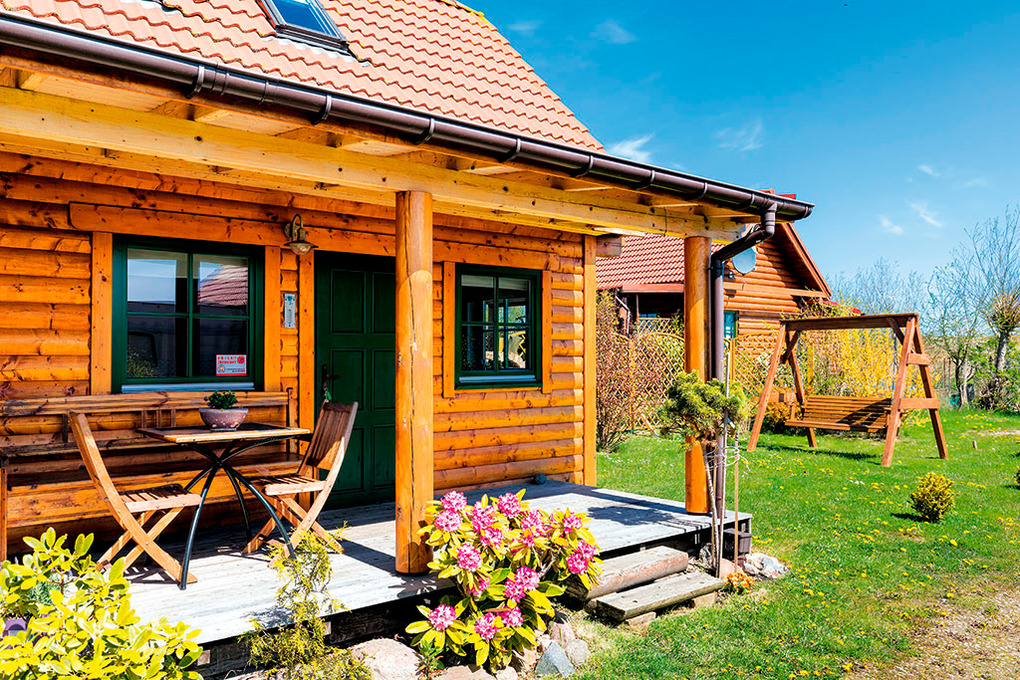 Haus: Schönes Ferienhaus mit 2 Doppelhaushälften in skandinavischer Rundholzbauweise. In der weitläufigen Anlage: Separates Saunahäuschen mit Relax-Terrasse. Angelteich. Grillplatz. Waschmaschine. Großer Garten mit Kinderspielplatz (Schaukel, Rutsche, Sandkasten). 5 Fahrräder ausleihbar. Parkplatz auf dem umzäunten Grundstück.
