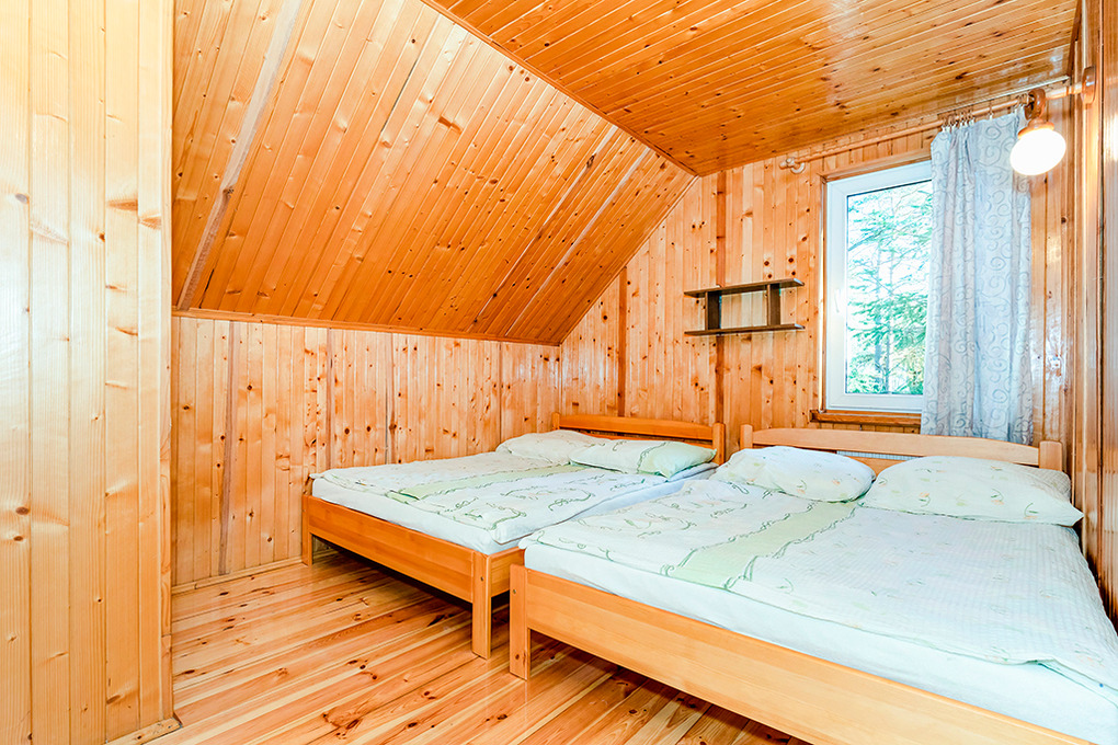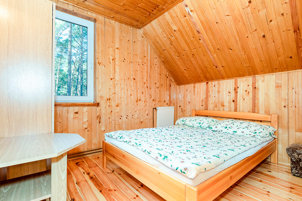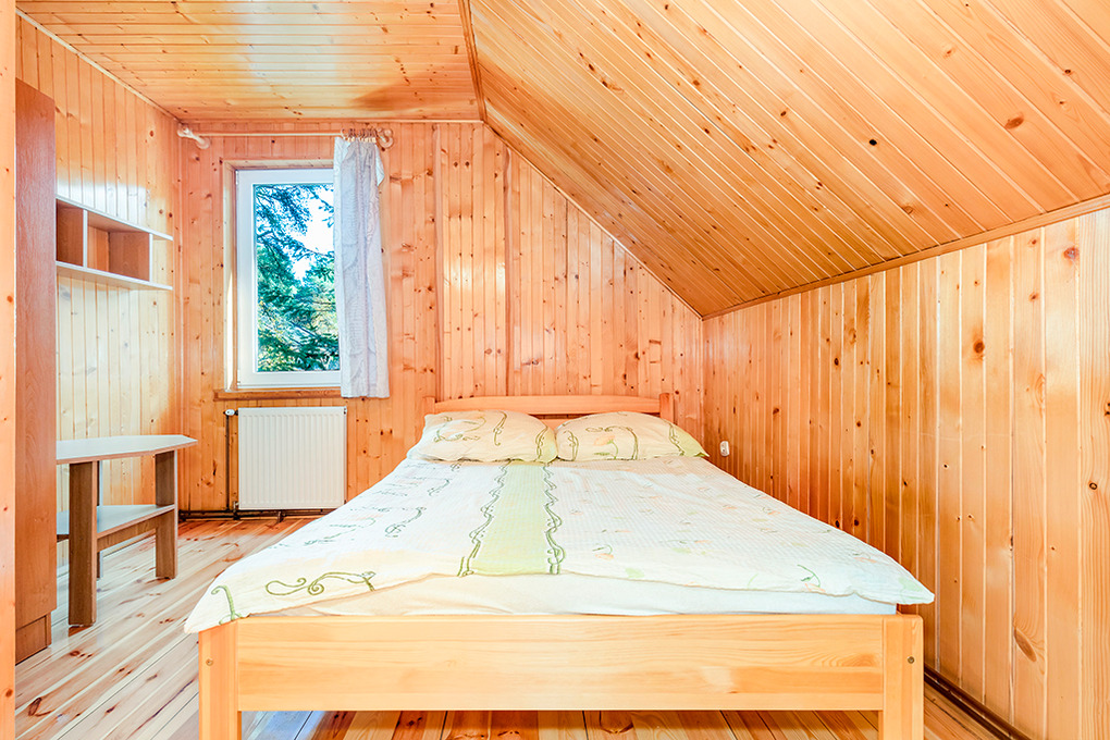 PL 30.10 Ferienhaus 4-10 Pers.: 5-Zimmerhaus mit ca.100 qm Wohnfläche über 2 Etagen. Parterre: Wohn-/Essraum mit schönem Kamin, Sitzecke, Sat-TV, Esstisch, Küchenzeile (Gaskocher 4 Fl., Spülmaschine). Bad: Du, Wb, WC. 1. Etage mit Schrägen: 3 Doppelzimmer, jeweils mit franz. Bett. 4-Bettzimmer mit 2 franz. Betten. Bad: Wb, WC.