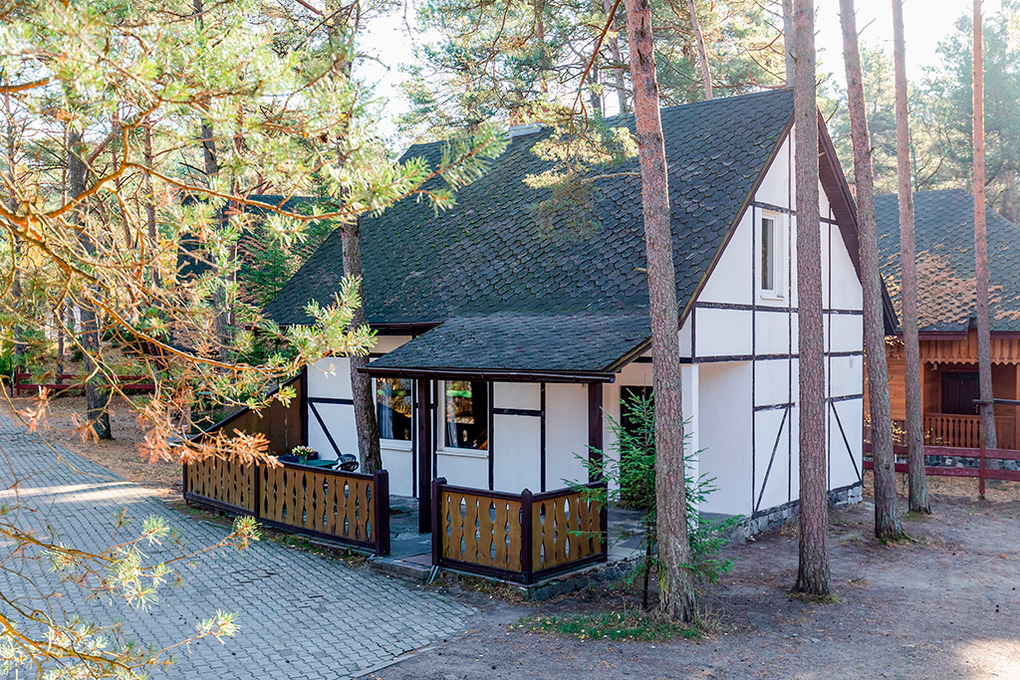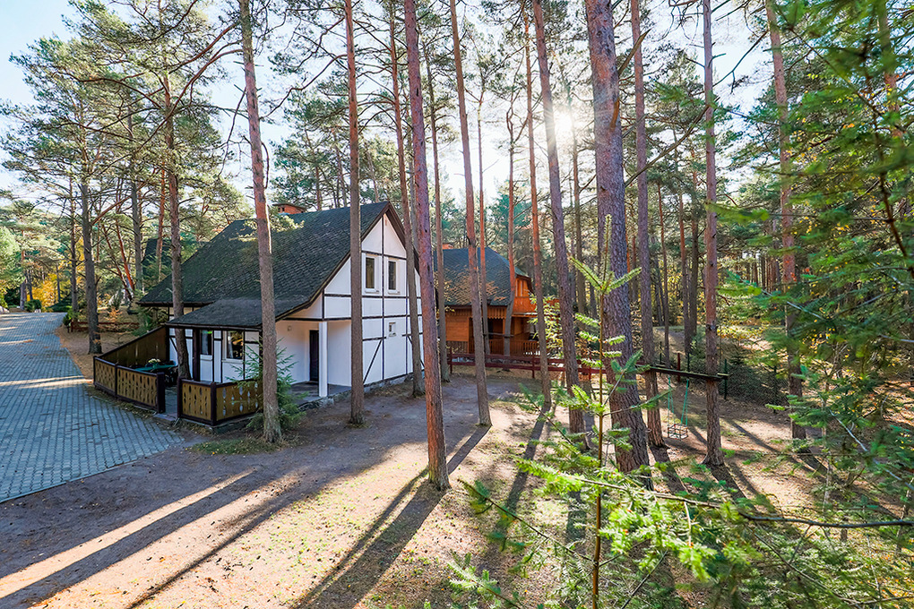 Ort: Pobierowo. Ruhige Lage in einer Ferienhaussiedlung auf einem großen Naturgrundstück mit lichtem Kiefernwald. Ostseestrand ca. 900 m. Ortsmitte 600 m, Lebensmittelgeschäft 30 m. Hallenbad 800 m.