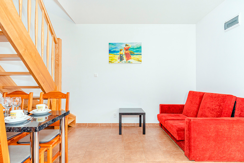 PL 55.14 Ferienhaus 2-4 Pers.: 3-Zimmer-Reihenhaus mit ca. 40 qm Wohnfläche über 2 Etagen. Parterre: Wohn-/Essraum mit Kaminofen (nur in PL 55.14/14A), Sofa, Flachbild Sat-TV, Esstisch, Küchenzeile (2 Platten-Ceranfeld). Bad/WC. 1. Etage: Doppelzimmer. 2-Bettzimmer. Terrasse mit Sitzmöbeln, Grill.