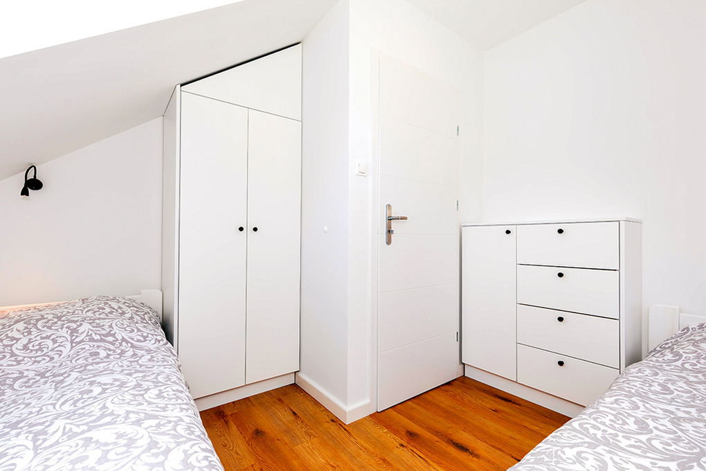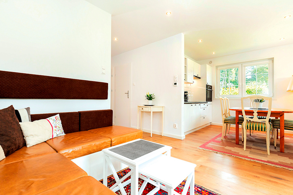 PL 60.3 Ferienhaus 2-6 Pers.: Niveauvolles 4-Zimmerhaus mit 75 qm Wohnfläche über 2 Etagen. Parterre: Schöner Wohn-/Essraum mit Kaminofen, Sitzgarnitur, Flachbild Sat-TV (deutsche Programme), Esstisch, moderner Küchenzeile (4 E-Platten, Backofen, Abzugshaube, Spülmaschine). Bad: Sauna, Du, Wb. Separates WC. 1. Etage mit Schrägen: 2 Doppelzimmer. 2-Bettzimmer. Kleines Bad: Du, Wb, WC.