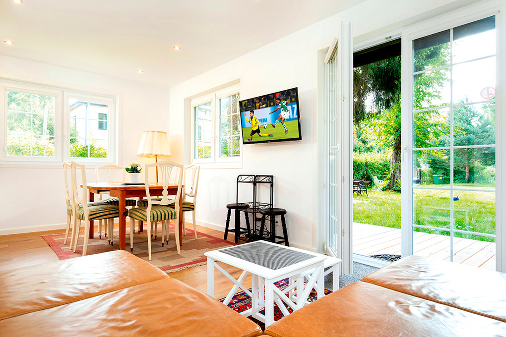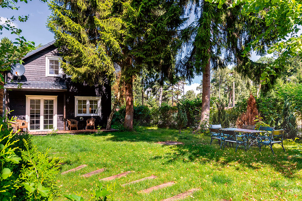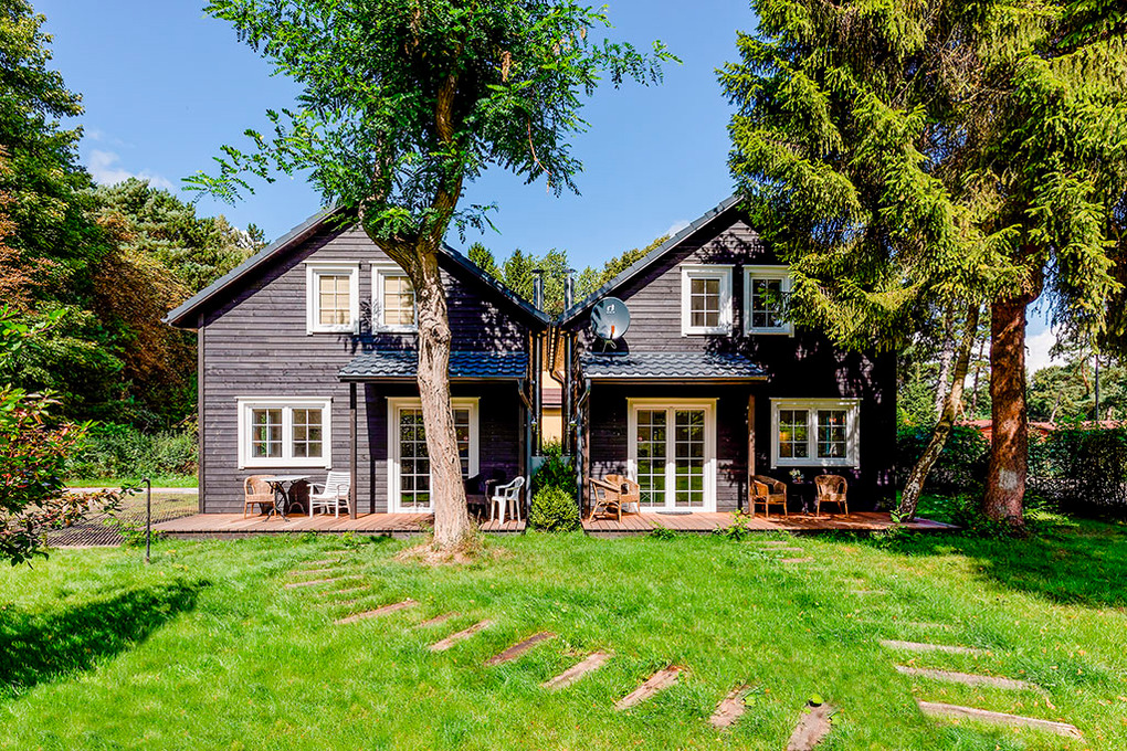 Haus: Zwei sehr schöne, komfortable Ferienhäuser im skandinavischen Stil mit Sauna und Kaminofen auf einem großen Gartengrundstück, 2018 neu erbaut. Moderne Einrichtung mit gemütlichem Ambiente. Heizung durch Kamin-Umluftheizung, Fußbodenheizung. Kostenloses Internet über Wlan. Terrasse mit Sitzmöbeln, schönem Blick in den Garten. 2 Pkw-Stellplätze/Haus auf dem abgeschlossenen Grundstück.