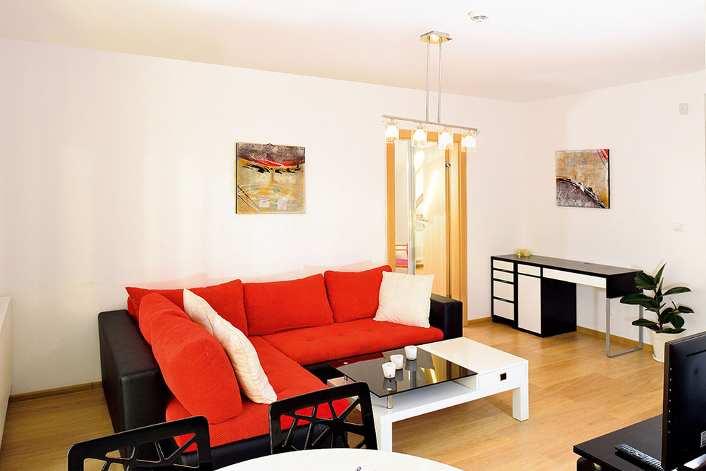 Haus: Schöne, moderne Villa mit 4 Ferienwohnungen. Nichtraucher-Wohnungen. Hochwertige, geschmackvolle Einrichtung. Kostenloses Internet über W-Lan. Zentralheizung. Balkon mit Sitzmöbeln. 1 Pkw-Stellplatz/FeWo am Haus.
