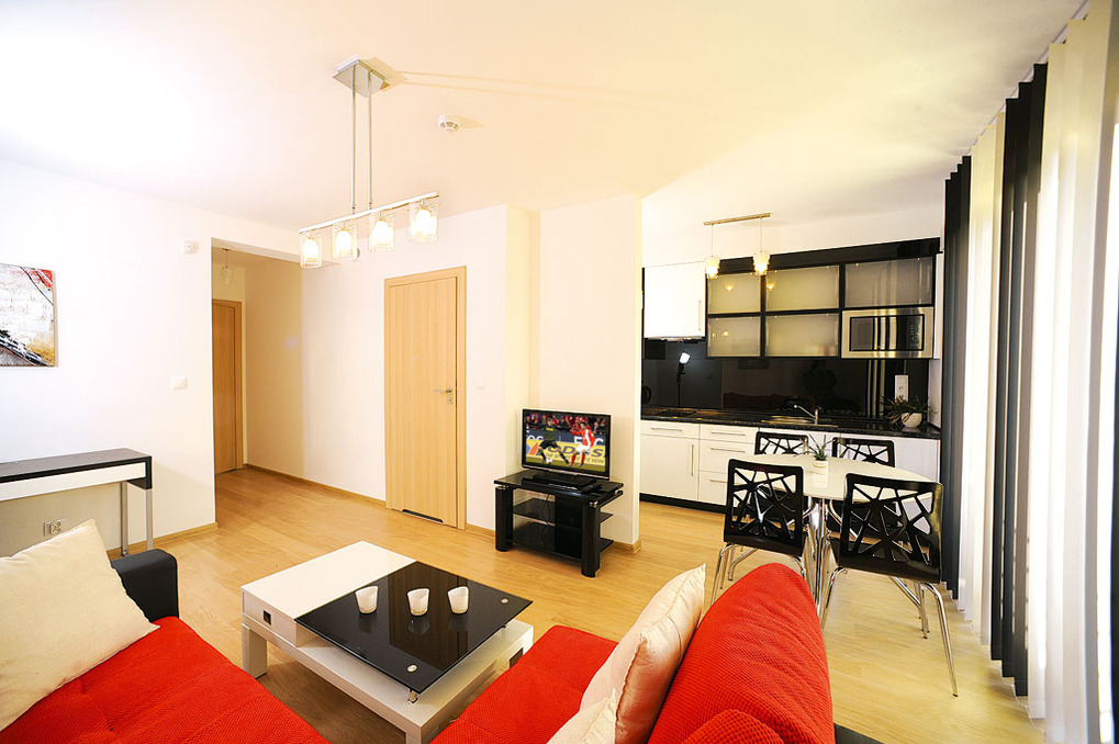 PL 41.12 Wohnung 1-4 Pers.: Niveauvoll eingerichtete 2-Zimmerwohnung mit 45 qm Wohnfläche, 1. Etage. Schöner Wohn-/Essraum mit Sitzgarnitur (Schlafsofa 2 Pers.), Sat-TV, Esstisch, Küchenzeile (2 Pl.-Ceranfeld, Mikrowelle). Doppelzimmer. Bad/WC. Balkon mit Sitzmöbeln.