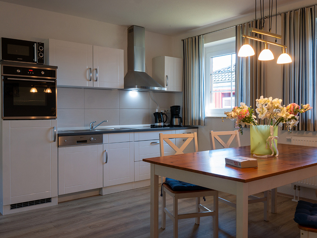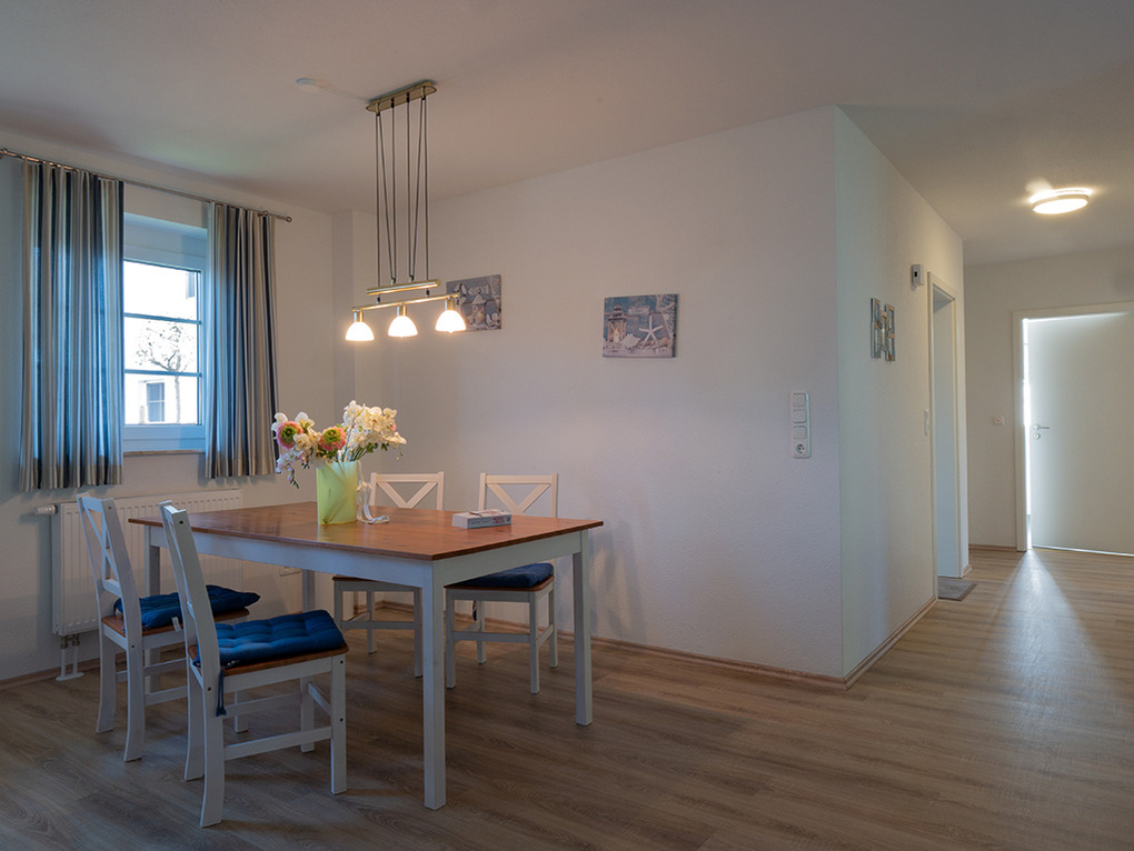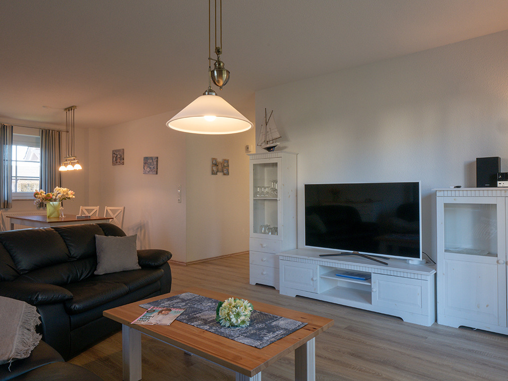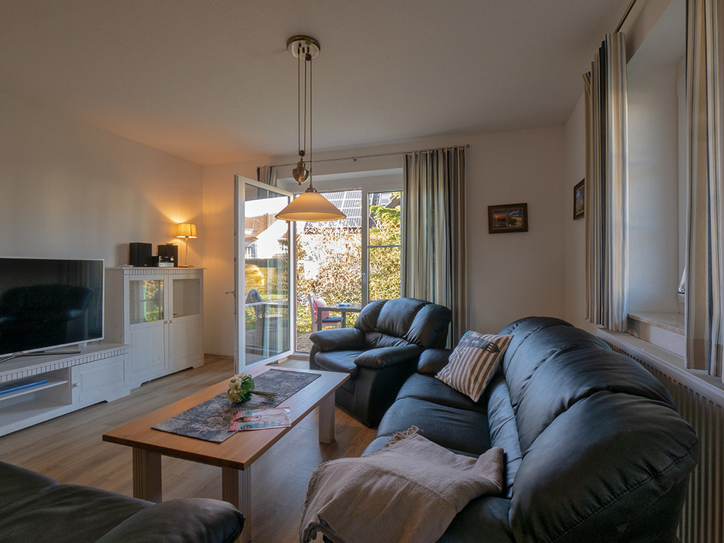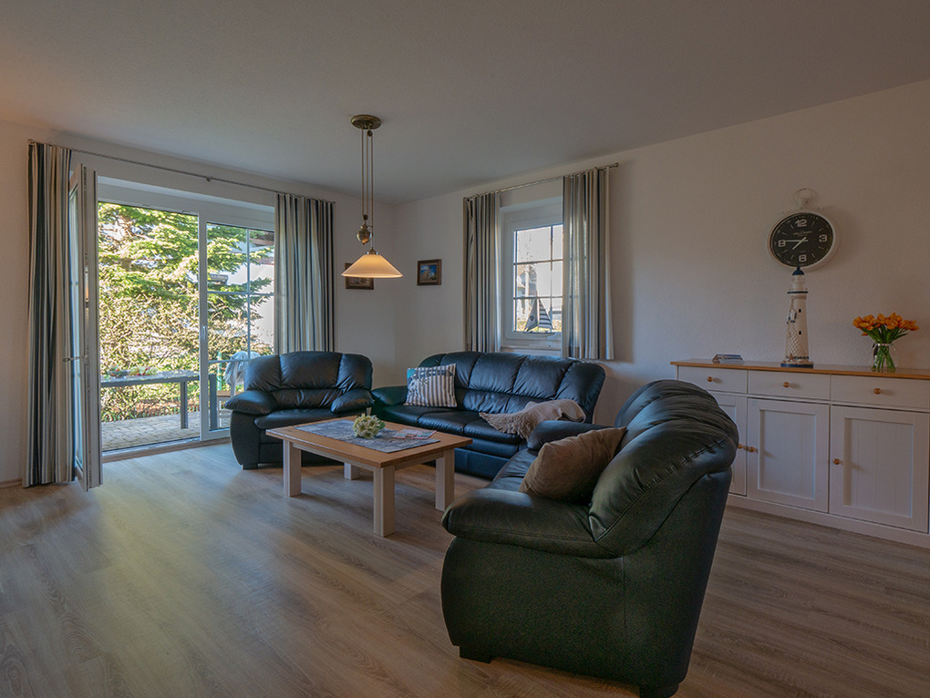 D 67.98 Wohnung 1-4 Pers.: Großzügige 3-Zimmerwohnung mit 80 qm Wohnfläche, Parterre. Großzügiger Wohn-/Essraum mit Sitzgarnitur, Sat-TV, Stereo-Anlage, großem Esstisch, gut ausgestatteter Einbauküche (Backofen, Mikrowelle, Spülmaschine). 2 Doppelzimmer. Bad: Dusche (barrierefrei), Wb, WC. Große Terrasse mit Sitzmöbeln.
