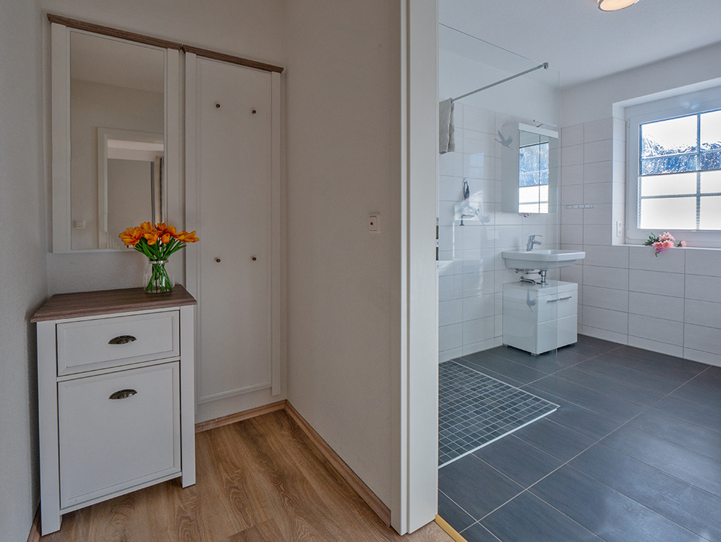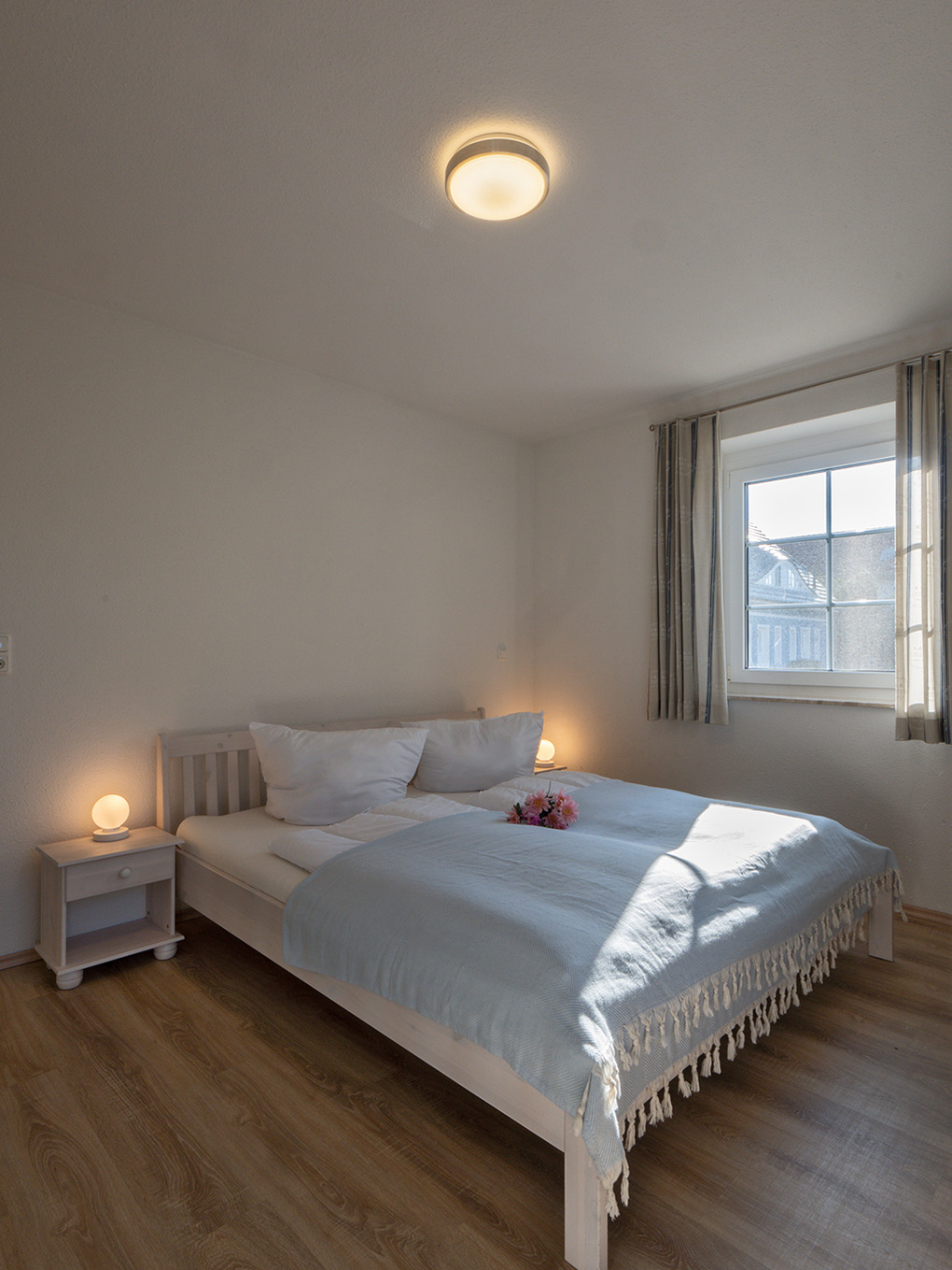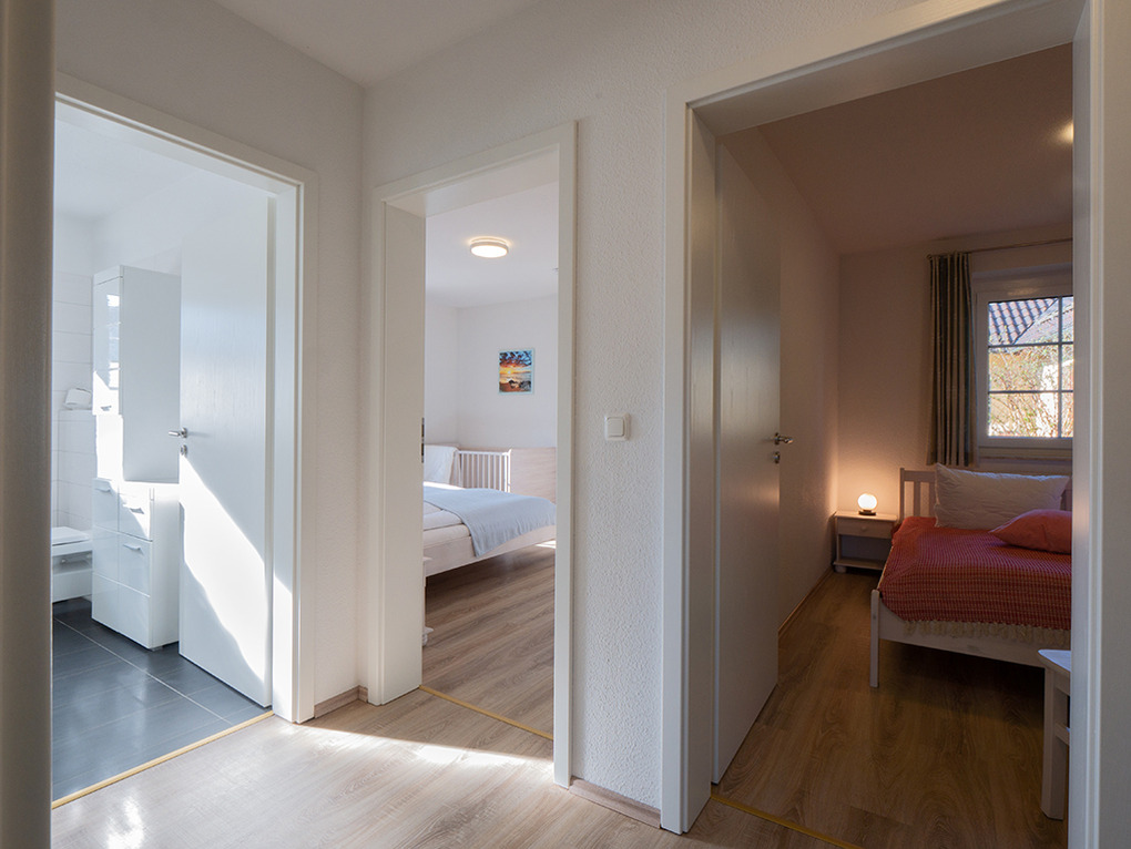 Haus: Schönes Ferienhaus mit zwei Ferienwohnungen, die auch gemeinsam vermietet werden. Geschmackvolle, moderne Einrichtung. Nichtraucherhaus. Zentralheizung. Jede Wohnung mit Terrasse oder Balkon mit Sitzmöbeln. Gepflegtes Gartengrundstück. 1 Pkw-Stellplatz/ Fewo.