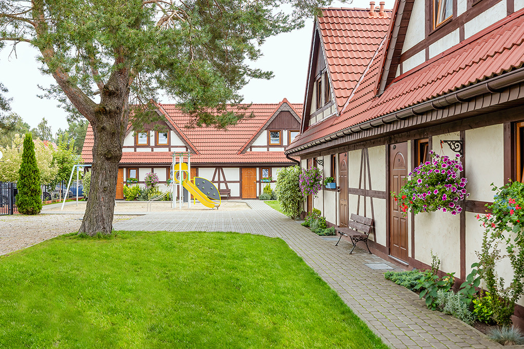 Ort: Dabki (Neuwasser), Ortsteil Bobolin. Schöne, ruhige Lage. Ostseestrand 700 m. Lebensmittelladen 150 m. Hotelhallenbad mit Wellnessbereich, Tennisplatz 200 m. Bukowosee mit Paddelboot-, Surfbrettverleih, Kitesurfing 1,5 km. Pferdegestüt 1,5 km.