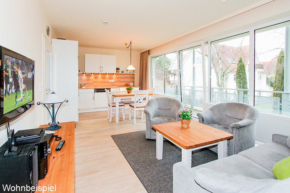 Haus: Architektonisch reizvolle Appartementanlage mit 4 Häusern. In der Anlage: Wellnessbereich mit Schwimmbad (kostenlose Nutzung), Sauna und Dampfbad (Gebühr), Solarium (Gebühr). Münzwaschmaschinen/-trockner. Fahrradkeller, Tiefgarage. Spielplatz. Hauseigener Fahrradverleih (Gebühr)