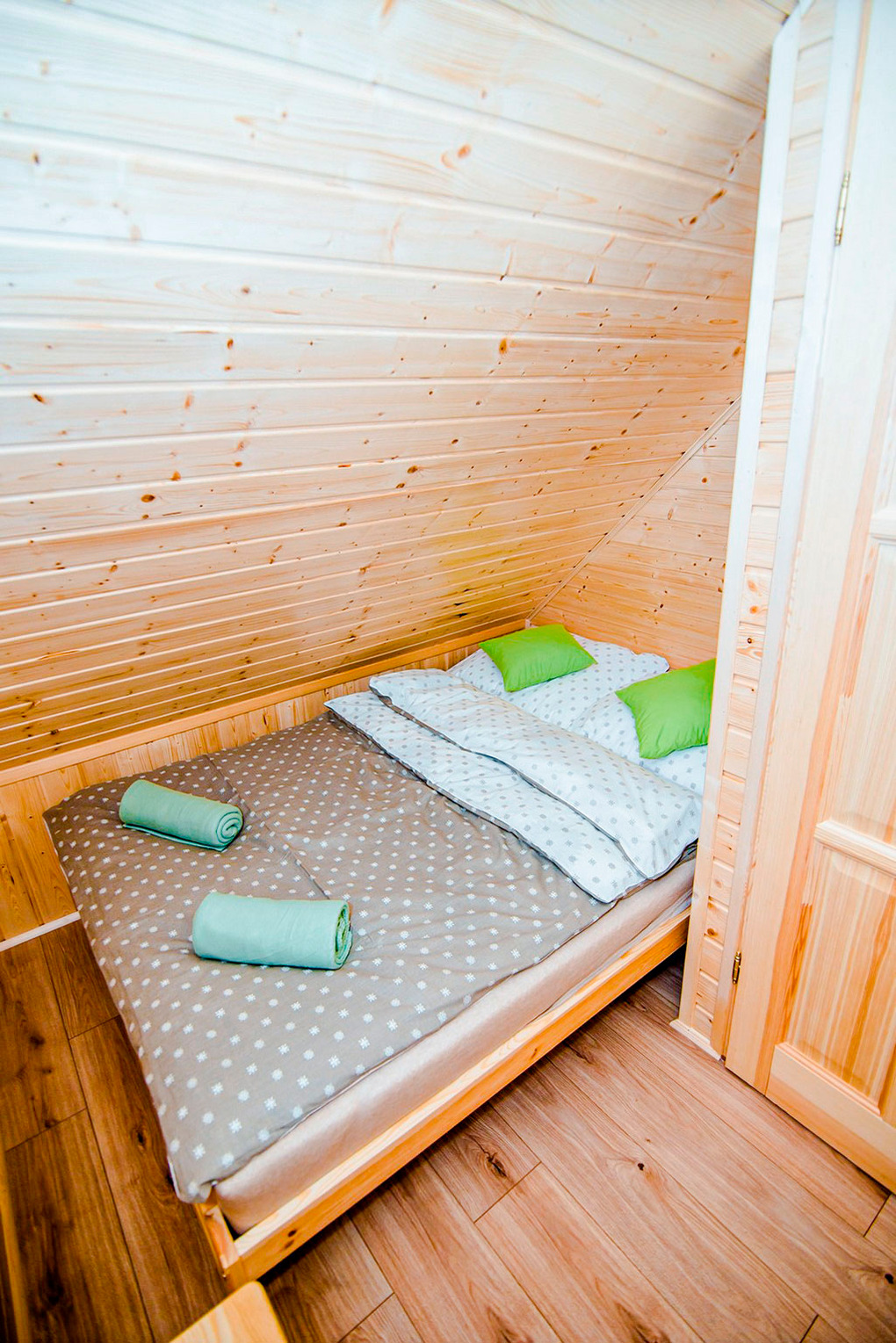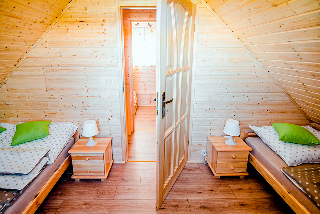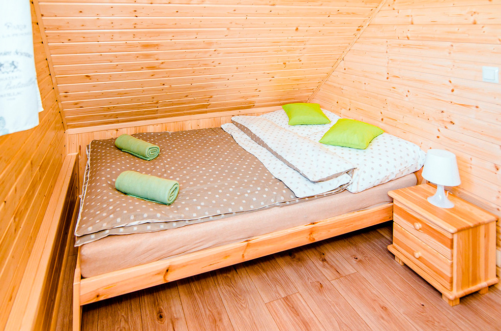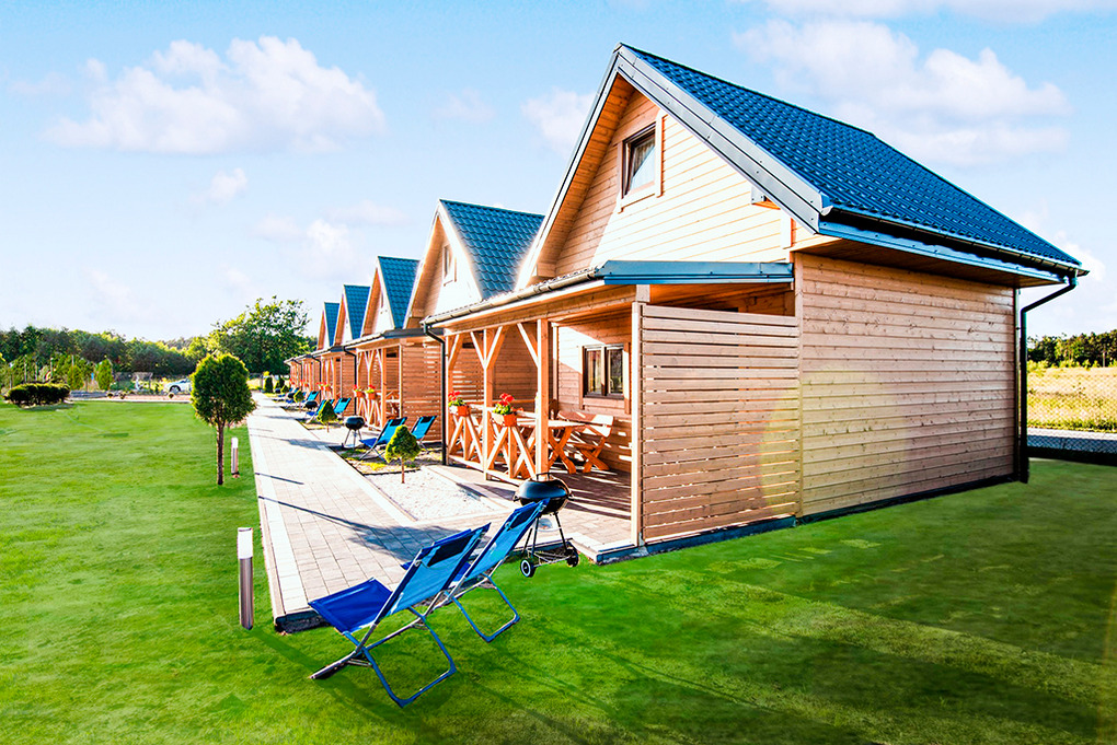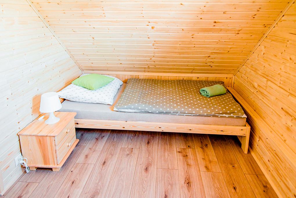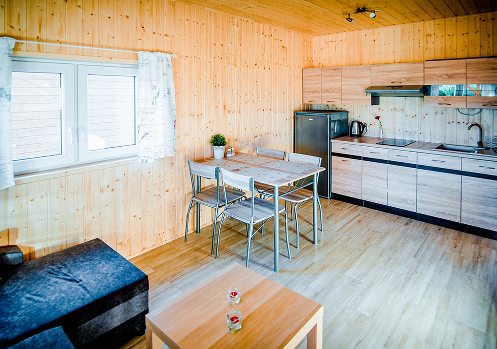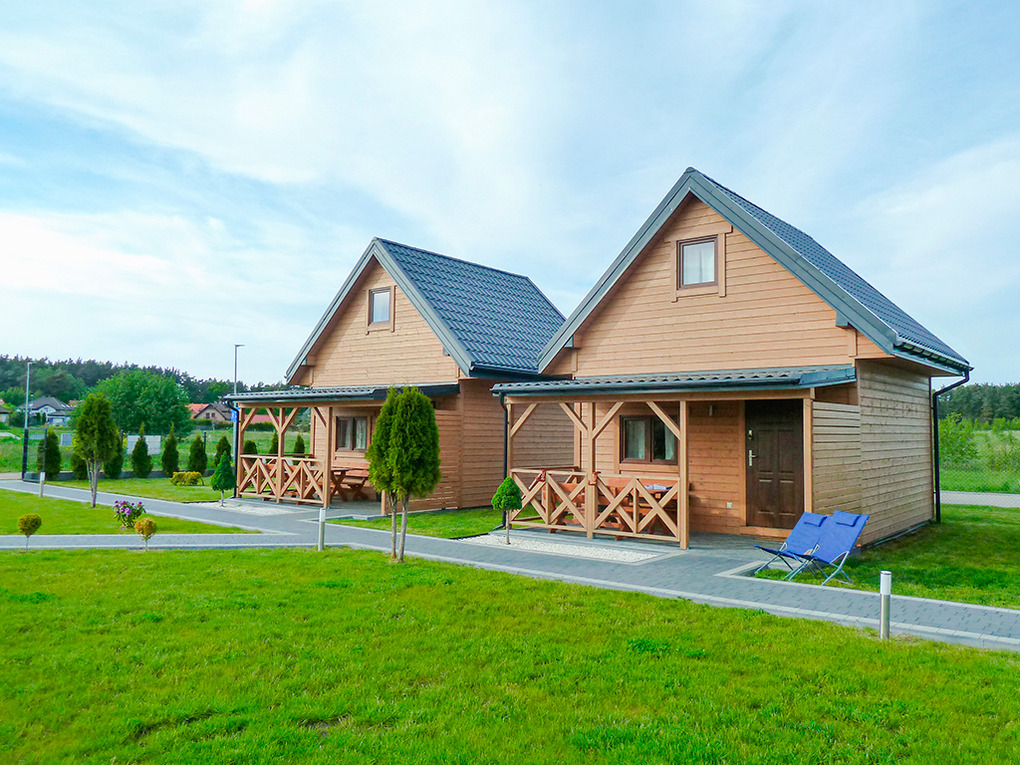 PL 85.15 Ferienhaus 2-8 Pers.: Komfortables 3-Zimmer-Ferienhaus mit 50 qm Wohnfläche über 2 Etagen. Parterre: Wohn-/Essraum mit Eckcouch (Ausziehcouch 2 Pers.), Flachbild-TV, Esstisch, Küchenzeile (2 E-Platten Induktionsfeld, Abzugshaube). Bad: Du, Wb, WC. Vom Wohnraum Holztreppe ins Dachgeschoss: Zwei 3-Bettzimmer mit Doppelbett, Einzelbett. Überdachte Terrasse mit Sitzmöbeln, Grill.