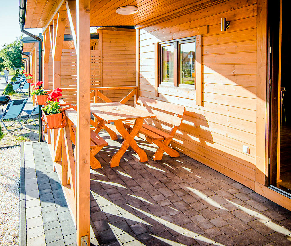 Gemütliche Ferienhäuser mit moderner Einrichtung. Kostenloses Internet über W-Lan. Heizung über E-Radiator, Warmwasser über Durchlauferhitzer. Überdachte Terrasse mit Sitzmöbeln, Grill. 2 Parkplätze/Ferienhaus im Preis inklusiv.