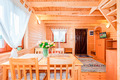PL 11.210 Ferienhaus 2-6 Pers.: Schönes 3-Zimmerhaus mit 60 qm Wohnfläche über 2 Etagen. Parterre: Schöner Wohn-/Essraum mit rustikaler Holzbalkendecke, Sofa (Klappcouch 2 Pers.), Flachbild-TV (dt. Programme), Esstisch, Küchenzeile (2 Platten Ceranfeld, Mikrowelle). Bad: Du, Wb, WC. Vom Wohnraum Holztreppe in die 1. Etage: Doppelzimmer mit Balkon. 2-Bettzimmer. Terrasse mit Sitzmöbeln, Grill.