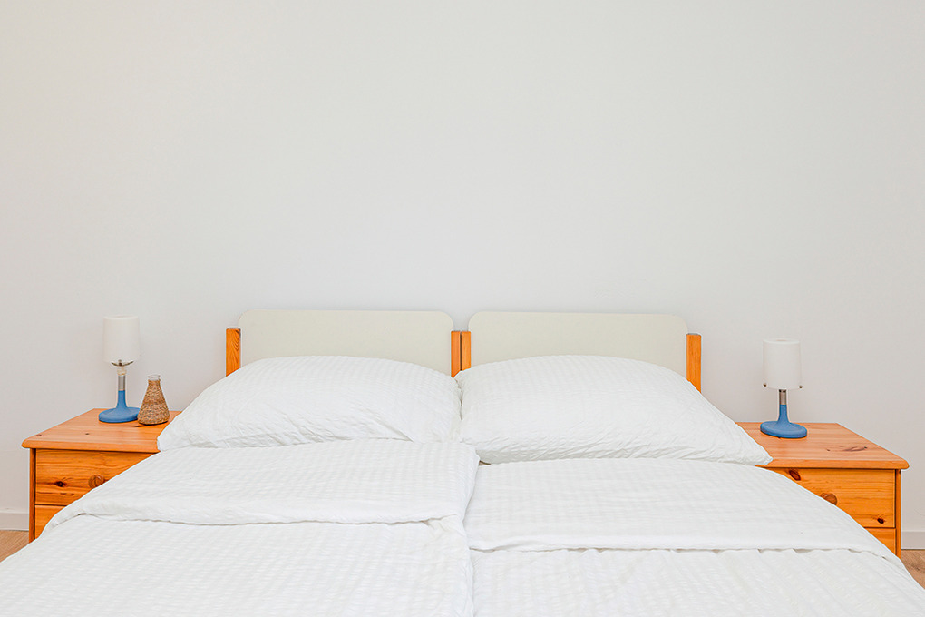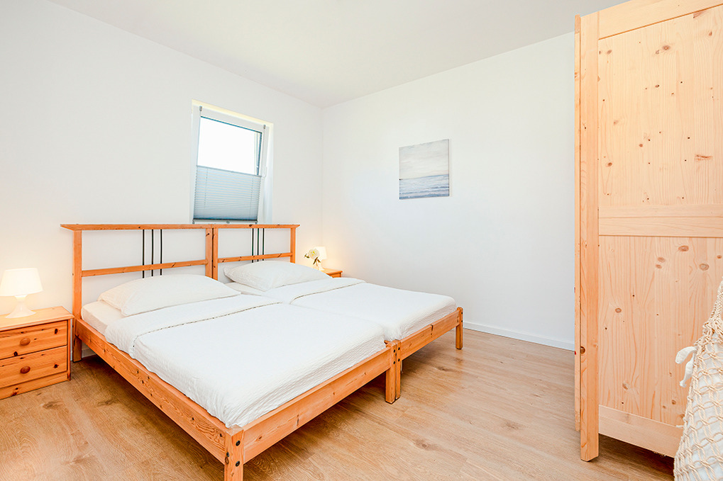 PL 55.8 Ferienhaus 3-6 Pers.: 4-Zimmerhaus mit ca. 57 qm Wohnfläche. Wohn-/Essraum mit Sitzgarnitur, Sat-TV (deutsche Programme), Esstisch, Küchenzeile (2 E-Platten). Drei 2-Bettzimmer (eins davon mit Etagenbett). Bad/WC.