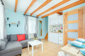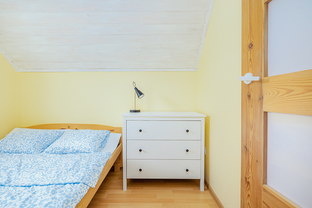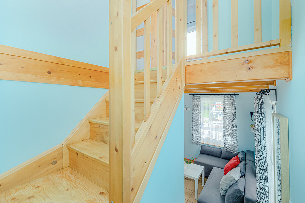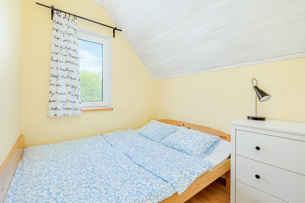 PL 31.21 Ferienhaus 2-6 Pers.: 3-Zimmerhaus mit ca. 40 qm Wohnfläche über 2 Etagen. Parterre: Wohn-/Essraum mit Ausziehcouch (2 Pers.), Sat-TV, Esstisch, Küchenzeile (2 E-Platten). Bad/WC. 1 Etage: Doppelzimmer. Kleines 2-Bettzimmer.
