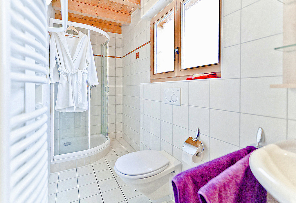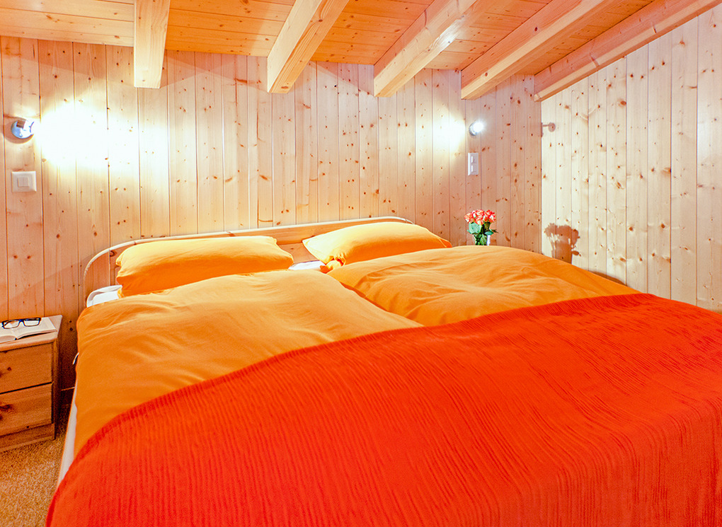 Parterre: Drei Doppelzimmer mit Bad (Du, Wb, WC). Sauna mit Dusche. Skiraum.