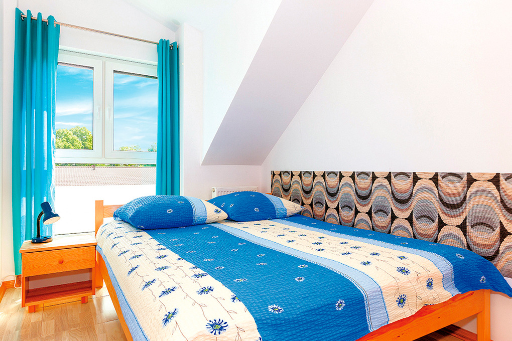 PL 55.20 Ferienhaus 2-4 Pers.: Komfortables 3-Zimmer-Reihenhaus mit ca. 50 qm Wohnfläche über 2 Etagen. Parterre: Wohn-/Essraum mit modernem Sofa, Flachbild Sat-TV mit deutschen Programmen, Esstisch, Küchenzeile (2 E-Platten). Bad/WC. 1. Etage: Doppelzimmer. 3-Bettzimmer. Hinweis: Die max. Belegung des Ferienhauses darf 4 Pers. nicht überschreiten.