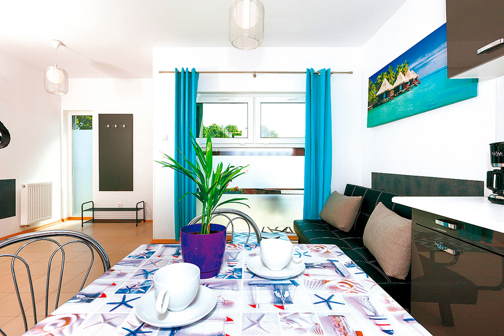 Ort: Sarbinowo. Ruhige Lage in einer Wohnsiedlung. Ostseestrand mit Strandpromenade 600 m. Ortsmitte 400 m.