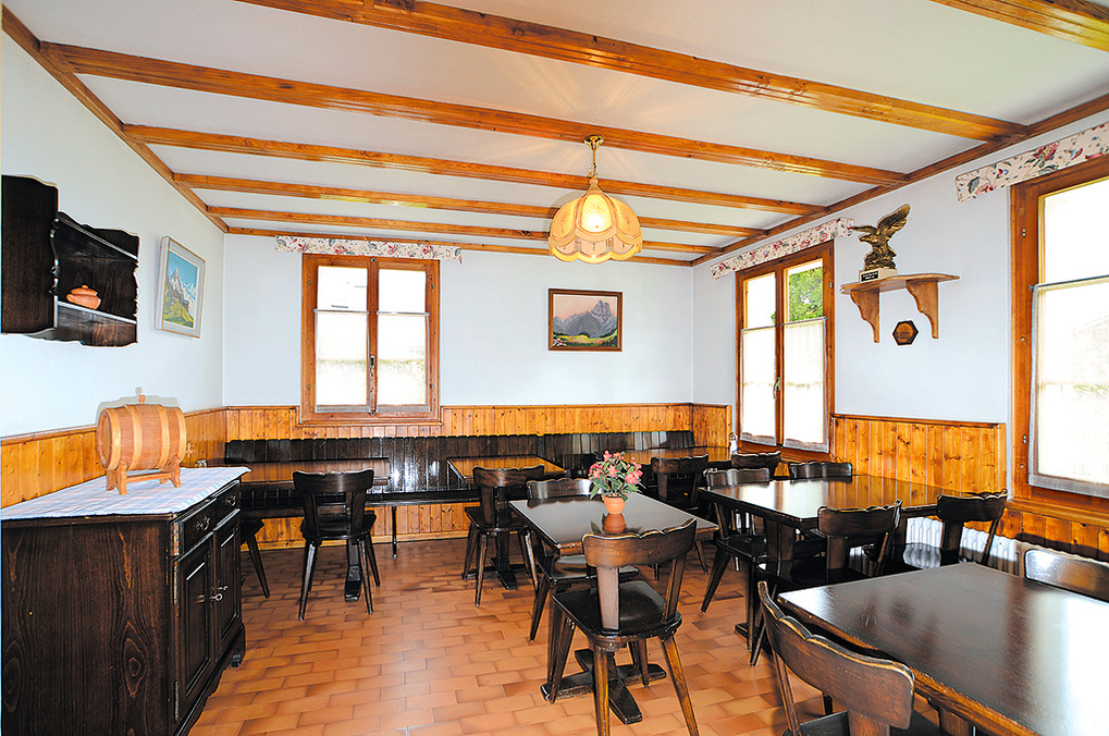 Haus: Schönes altes Chalet mit Sauna und Kamin, aufwendig zu einem gemütlichen Ferienhaus renoviert. Kostenloser Internetzugang über W-Lan. Ideal für Gruppen: Großes Platzangebot über 4 Etagen. Freundlicher Tagesraum, zusätzlicher Partyraum mit Bar. 27 gemütliche Schlafzimmer, fast nur Einzel- und Doppelzimmer. Alle mit Wb, einige mit eigenem Bad (Du, WC), teils Balkon. Frosch-Büro im Haus. Skischuhraum. Öl-Zentralheizung.