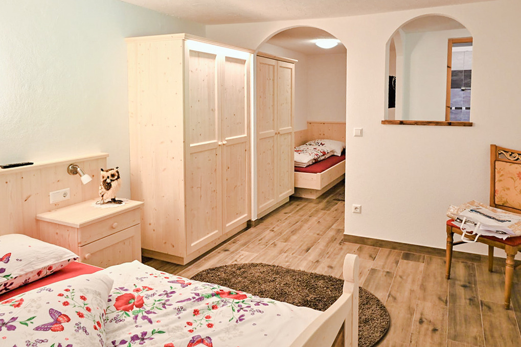 I 25.8 Wohnung 4-6 Pers.: 3 ½-Zimmerwohnung, 100 qm Wohnfläche, Parterre. Große gemütliche Stube mit Kachelofen, Sitzecke in schönem Erker mit umlaufender Fensterfront, Sat-TV. Geräumige Küche mit moderner Küchenzeile (Backofen, Spülmaschine). Wohnliches Doppelzimmer. 4-Bettzimmer mit Doppelbett, Ausziehcouch (2 Pers.). 2 Bäder jeweils mit Du, Wb, WC, Bidet, eines mit Doppel-Wb. Ausgang in den schön gestalteten Garten.