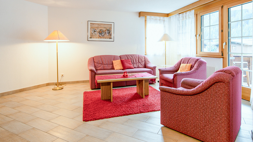 CH 291.34 Wohnung 1-6 Pers.: 4 1/2-Zimmerwohnung mit 120 qm Wohnfläche, 2. Etage. Schöner Wohnraum mit gemütlicher Sofa-Sitzgruppe, Flachbild-TV, Radio/CD, Esstisch, Balkon. Küchen-/Essraum mit Esstisch, Küchenzeile (Backofen, Spülmaschine). Drei Doppelzimmer, davon zwei mit Balkon. Zwei Bäder: Bw bzw. Du, Wb, WC.
