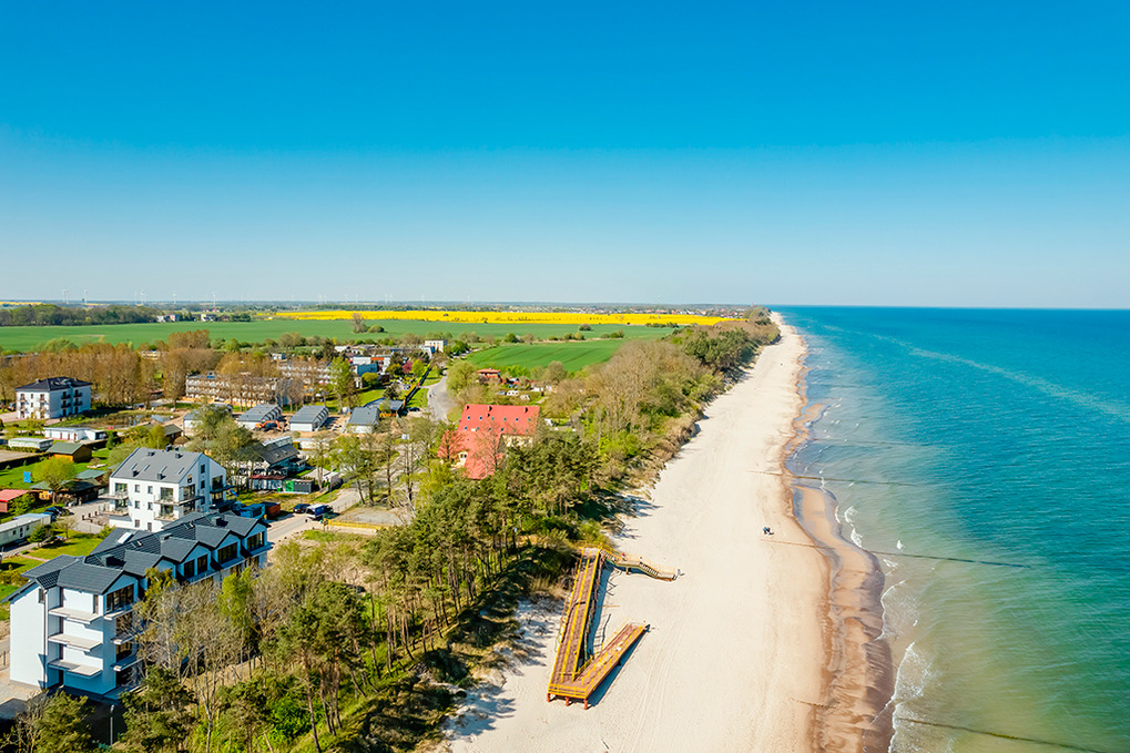 Ort: Sarbinowo. Hervorragende Lage mit Wasserblick. Ostseestrand 50 m. Ortsmitte 600 m.