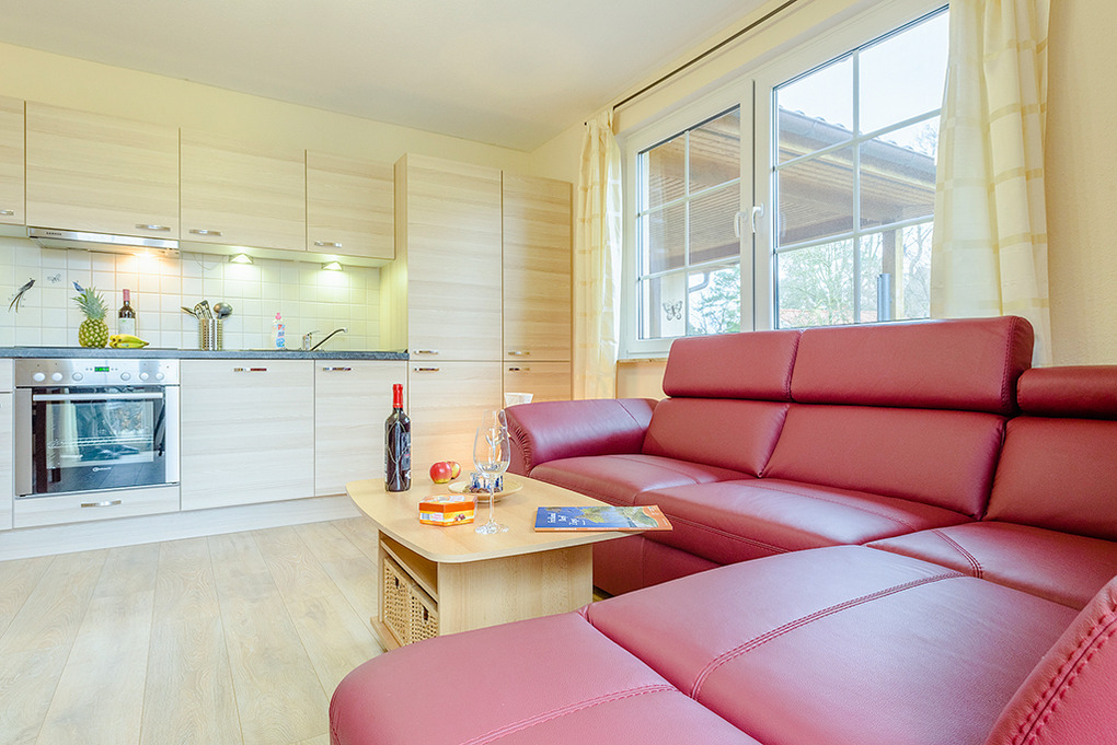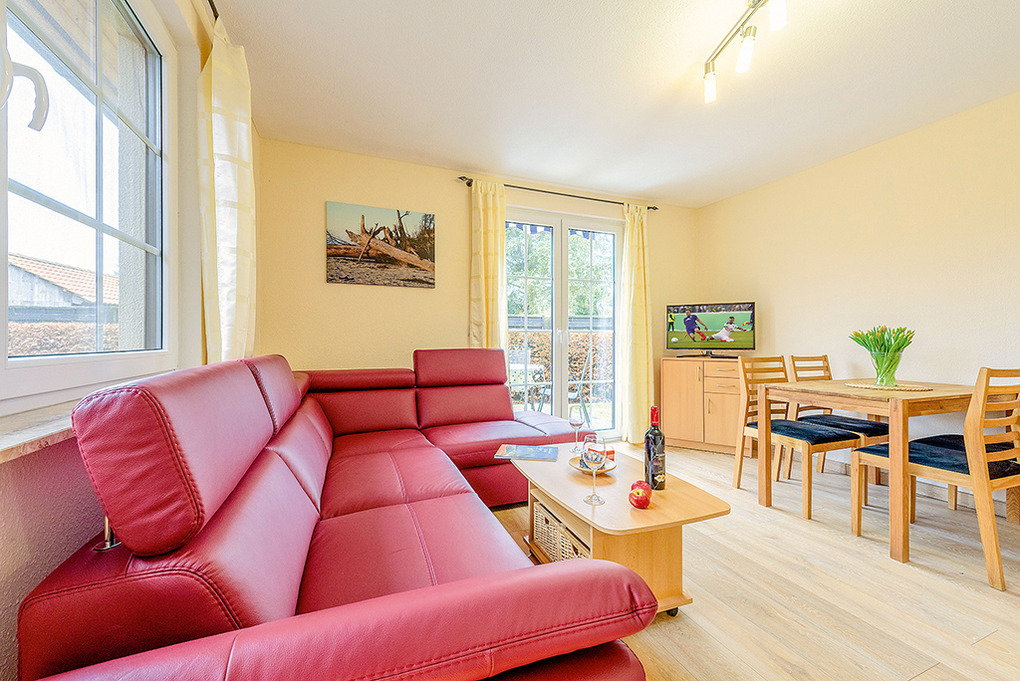 D 64.18 Wohnung 1-4 Pers.: 3-Zimmerwohnung mit 40 qm Wohnfläche, Parterre. Wohn-/Essraum mit Couchgarnitur, Flachbild-Sat-TV, Esstisch, moderner Küchenzeile (Backofen, Spülmaschine). 2 Doppelzimmer, eins davon mit franz. Bett. Bad/WC.