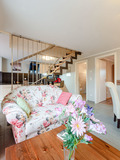 D 65.9 Ferienhaus 1-6 Pers.: 4-Zimmerhaushälfte mit 87 qm Wohnfläche. Parterre: Wohn-/Essraum mit Couch, Flachbild-Sat-TV, Esstisch, moderner Küchenzeile (Backofen, Spülmaschine). Doppelzimmer mit zusätzlichem Kinderbett. Bad: Du, Wb, WC, Waschmaschine/Trockner (Gebühr). 1. Etage: Doppelzimmer. 2-Bettzimmer mit Flachbild-Sat-TV. Bad: Du, Wb, WC, Kinderwaschbecken. Terrasse mit Sitzmöbeln.