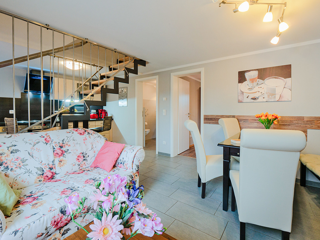 Ort: Wieck. Zentrale Lage. Ortsmitte 500 m. Bodden 800 m. Hafen 1,8 km. Ostseestrand Prerow 4 km.