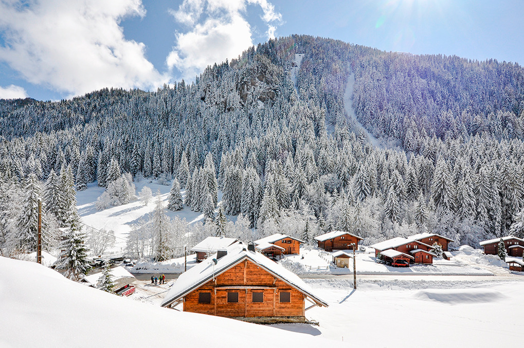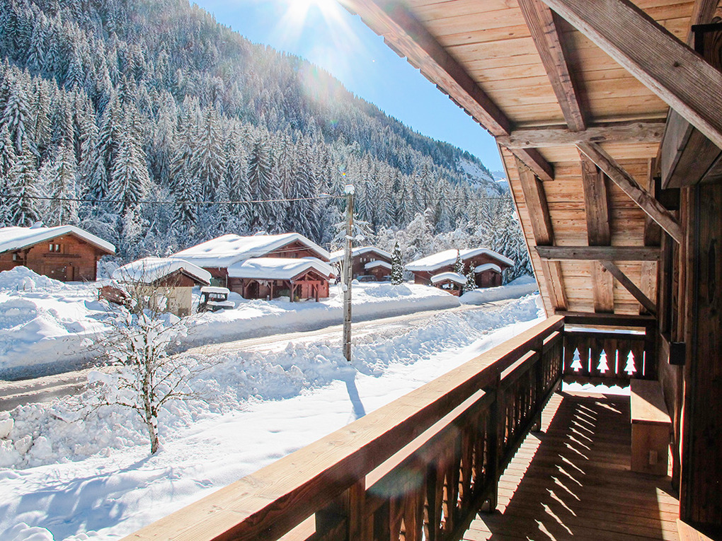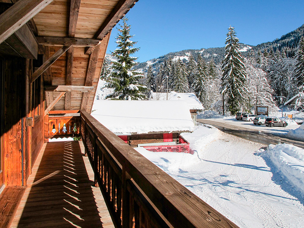 Ort: Châtel. Gute Lage zwischen den Ortsteilen Linga (800 m) und Pré la Joux (1,2 km) mit Gondel und Sesselliften. Je nach Schneelage Skiabfahrt bis in Hausnähe über einen Ziehweg. Ortsmitte, Gondel Richtung Morgins 3,8 km. Skibus 20 m.