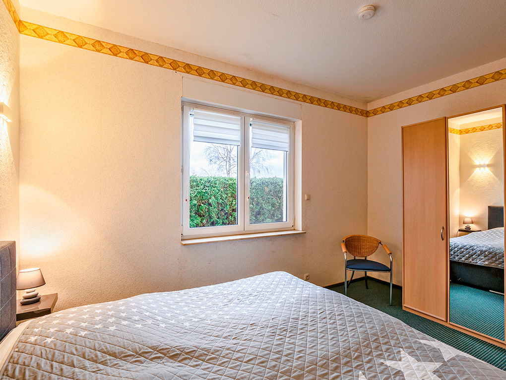 D 133.62 Wohnung 2-4 Pers.: 2-Zimmerwohnung mit 50 qm Wohnfläche, Parterre. Sehr großzügiger Wohnraum mit Sitzgarnitur (Ausziehcouch 2 Pers.), Sat-TV, Radio/CD, Esstisch, gut ausgestatteter Einbauküche (Backofen, Mikrowelle, Spülmaschine). Doppelzimmer. Bad/WC.
