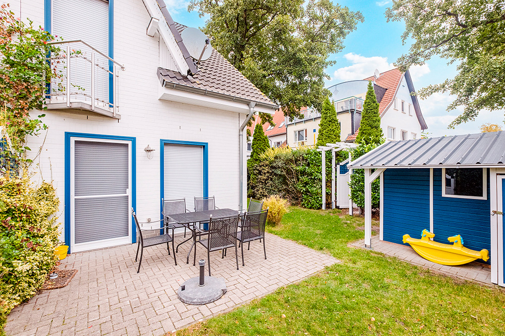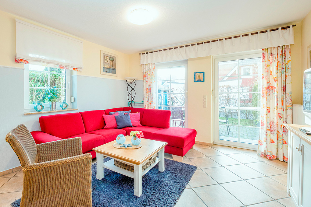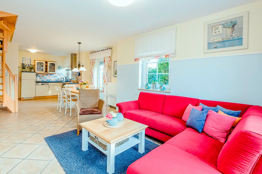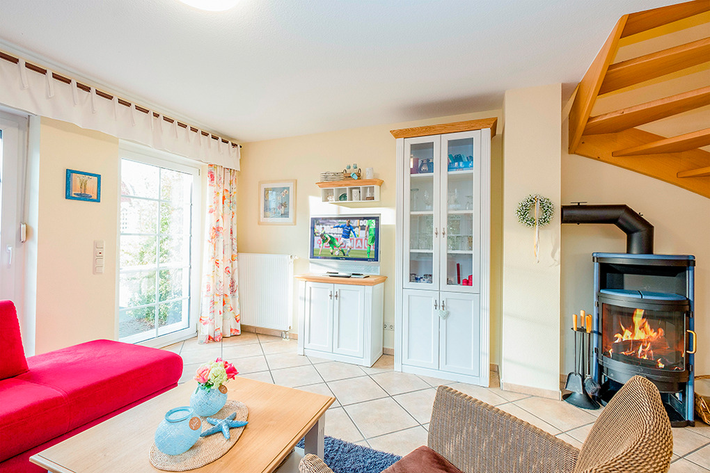 Haus: Sehr schönes, komfortables Doppelhaus, in 2017 komplett renoviert. Jede Haushälfte mit Sauna und Kaminofen. 3 Schlafzimmer, 2 Bäder. Gehobene Ausstattung mit geschmackvoller Möblierung. Waschmaschine, Trockner. Zentralheizung. Kostenloser Internetzugang über W-Lan. Terrasse mit Sitzmöbeln, anschließend kleiner Garten. Fahrradschuppen. 2 Pkw-Stellplätze pro Haushälfte.